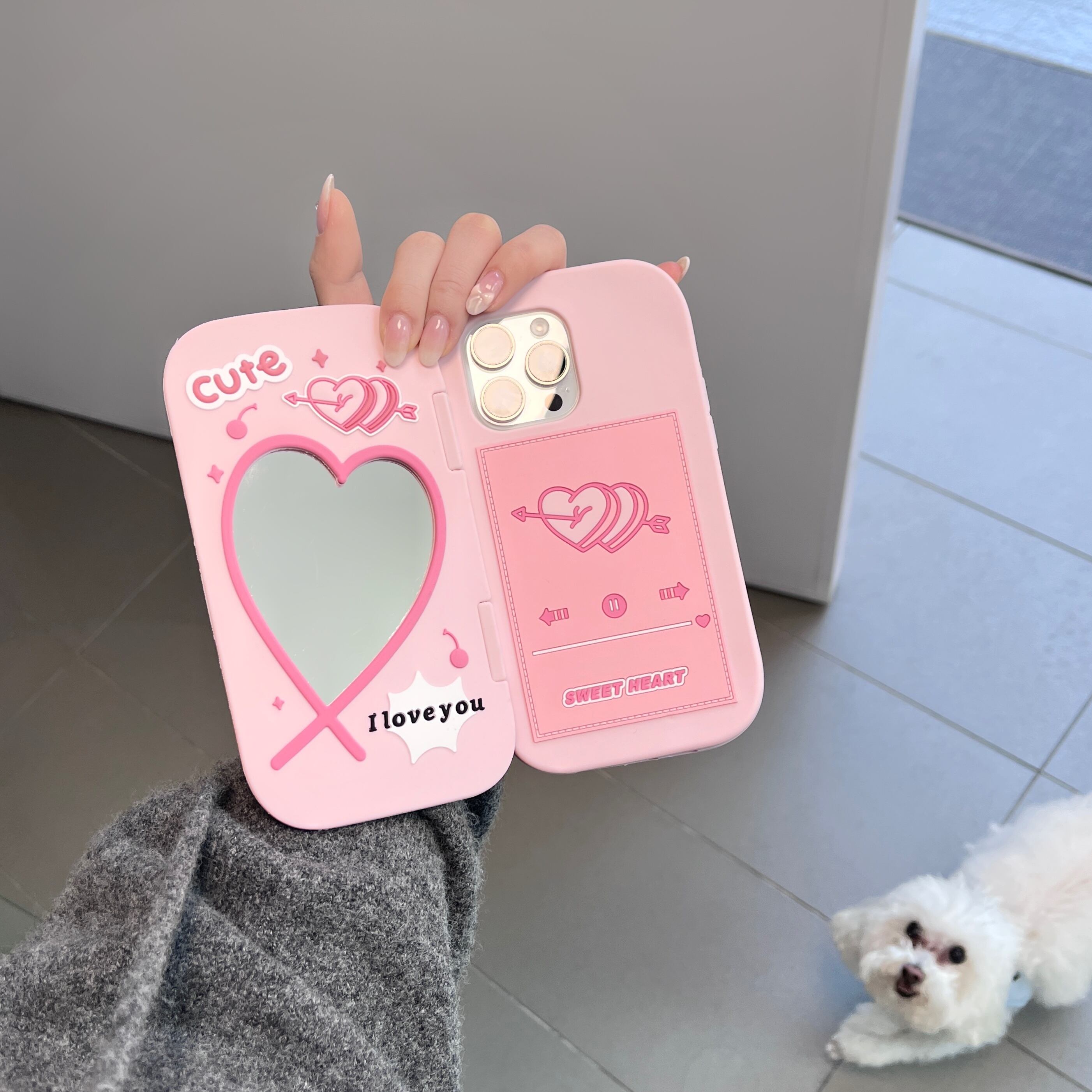 ハートミラーのデザインがとってもキュートなiPhoneケース。