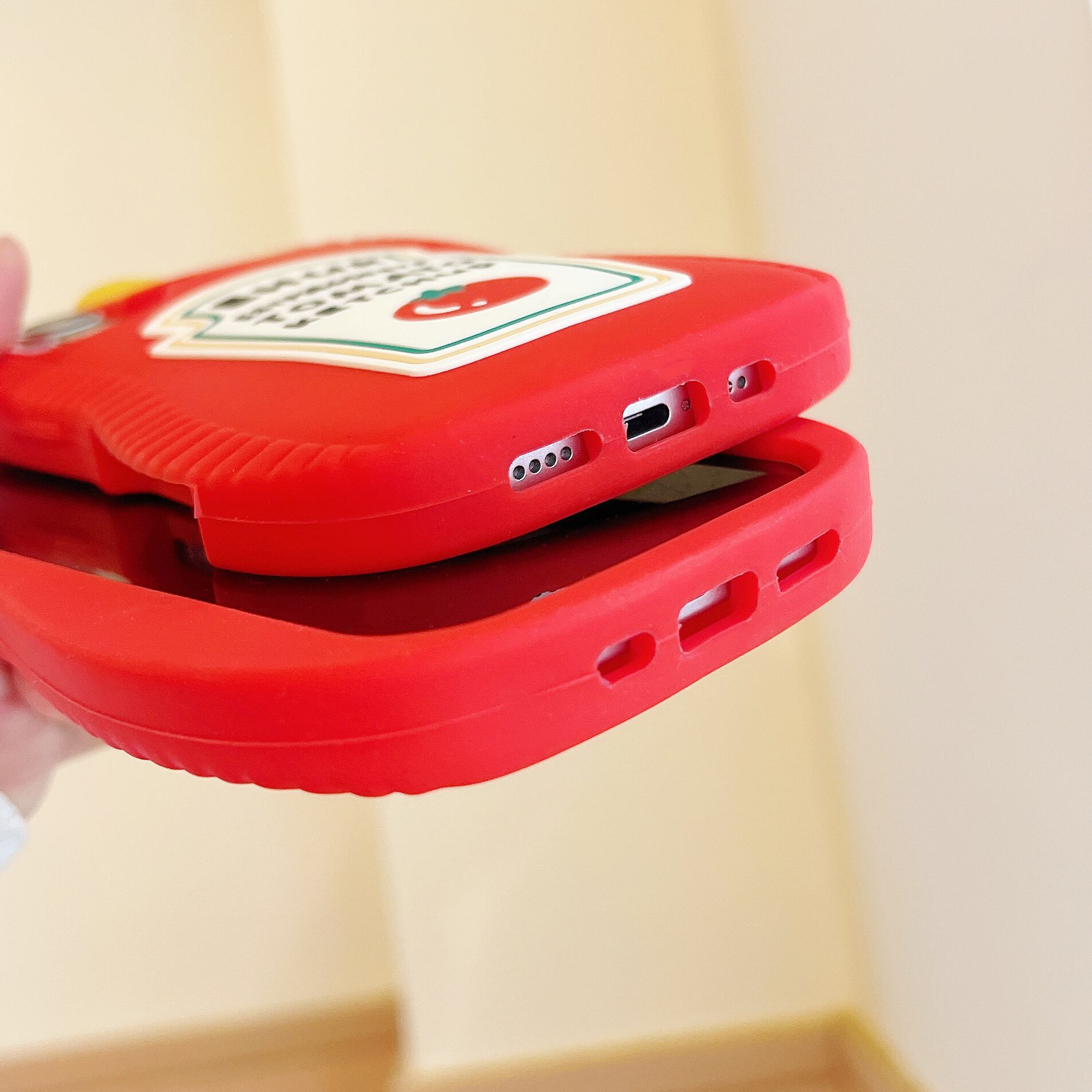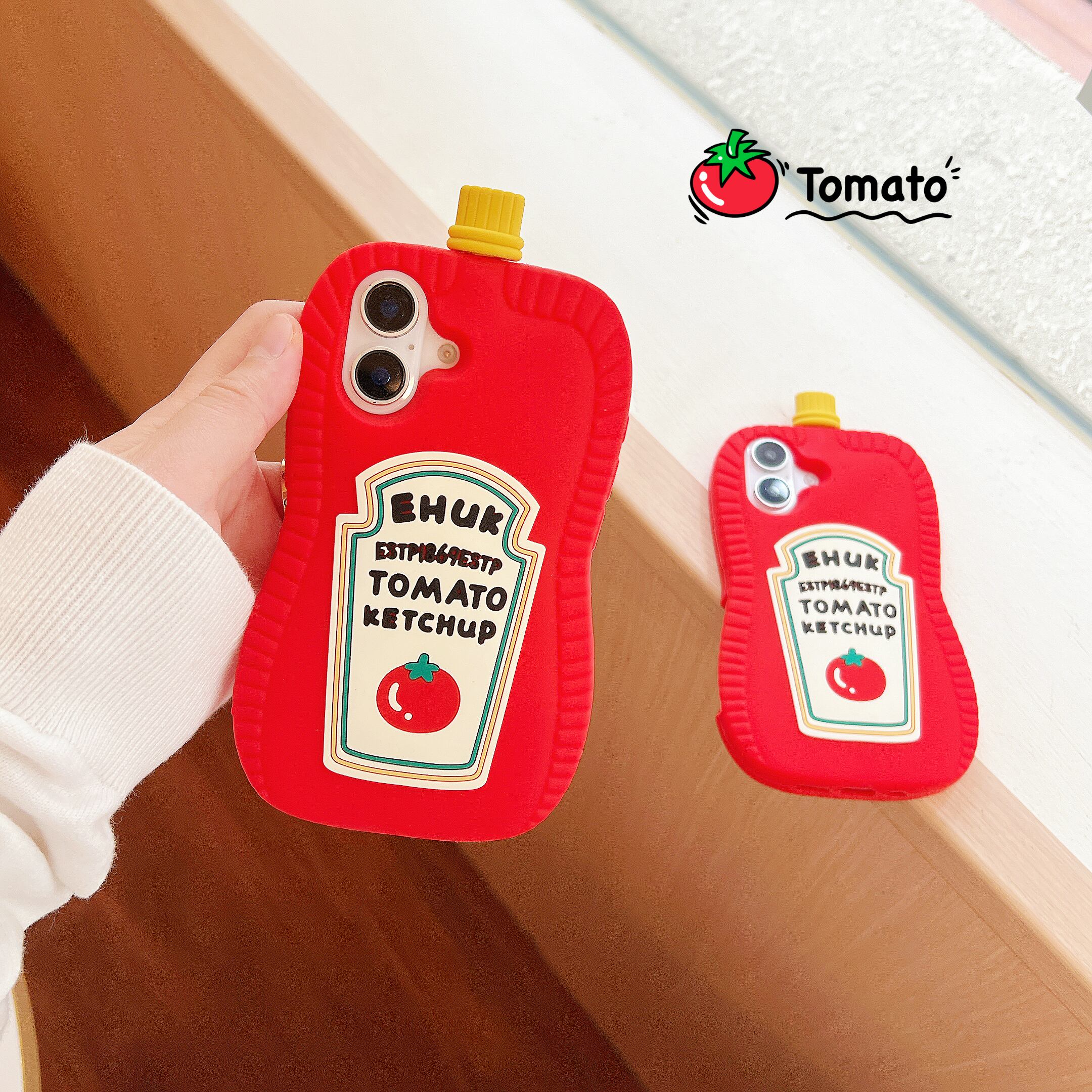 iPhoneケース, シリコンケース, ケチャップ, トマト, 食品サンプル, 面白い, おもしろ, ユニーク, 個性的, スマホケース, スマホカバー, SNS映え, インスタ映え, 話題, シリコン, ソフトケース, 食品, デザイン, グリップ, 持ちやすい, 保護, ユニークデザイン, おしゃれ, フード, 食べ物, かわいい, マニア, コレクター, プレゼント