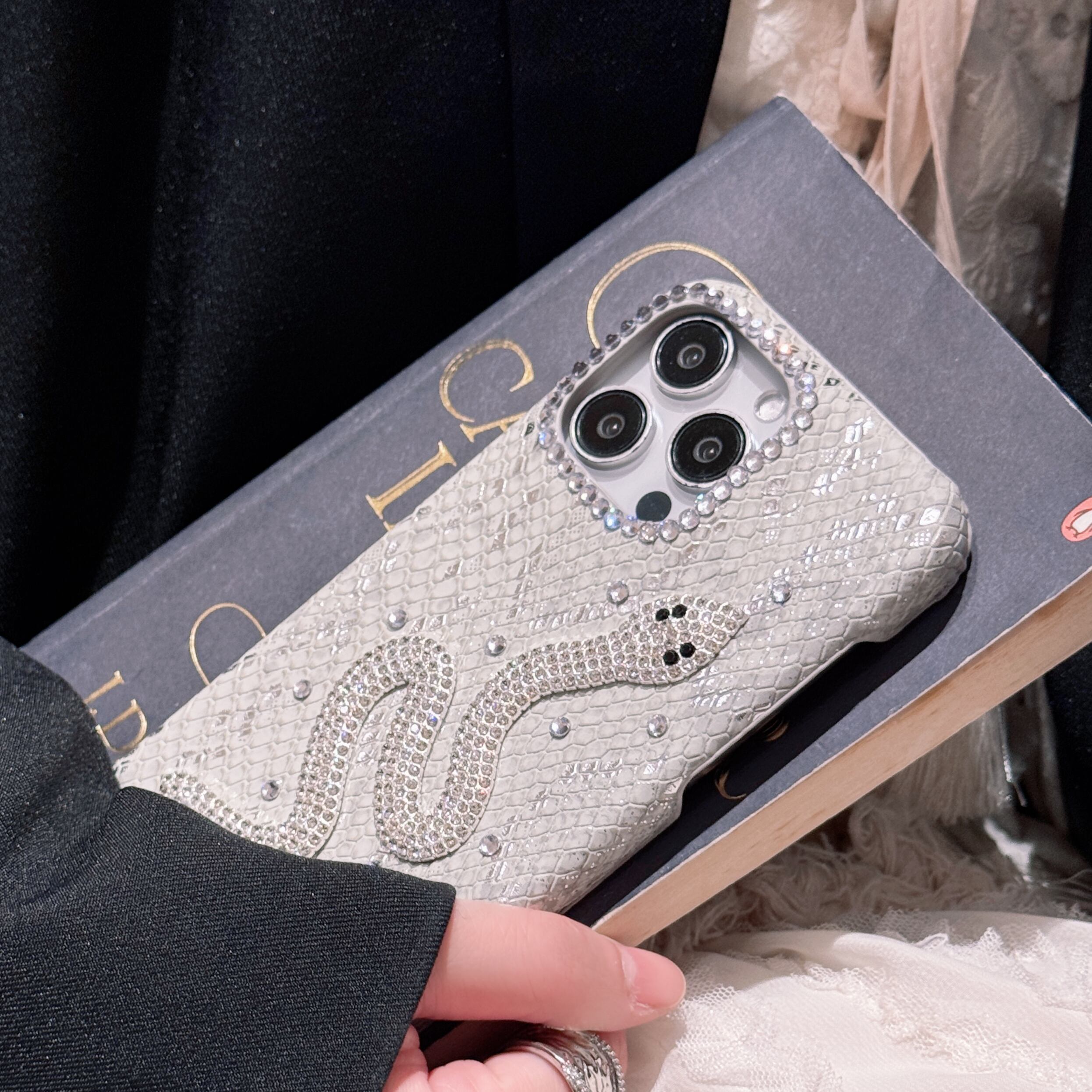 キラキラダイヤ&ヘビ柄 PUレザー iPhoneケース