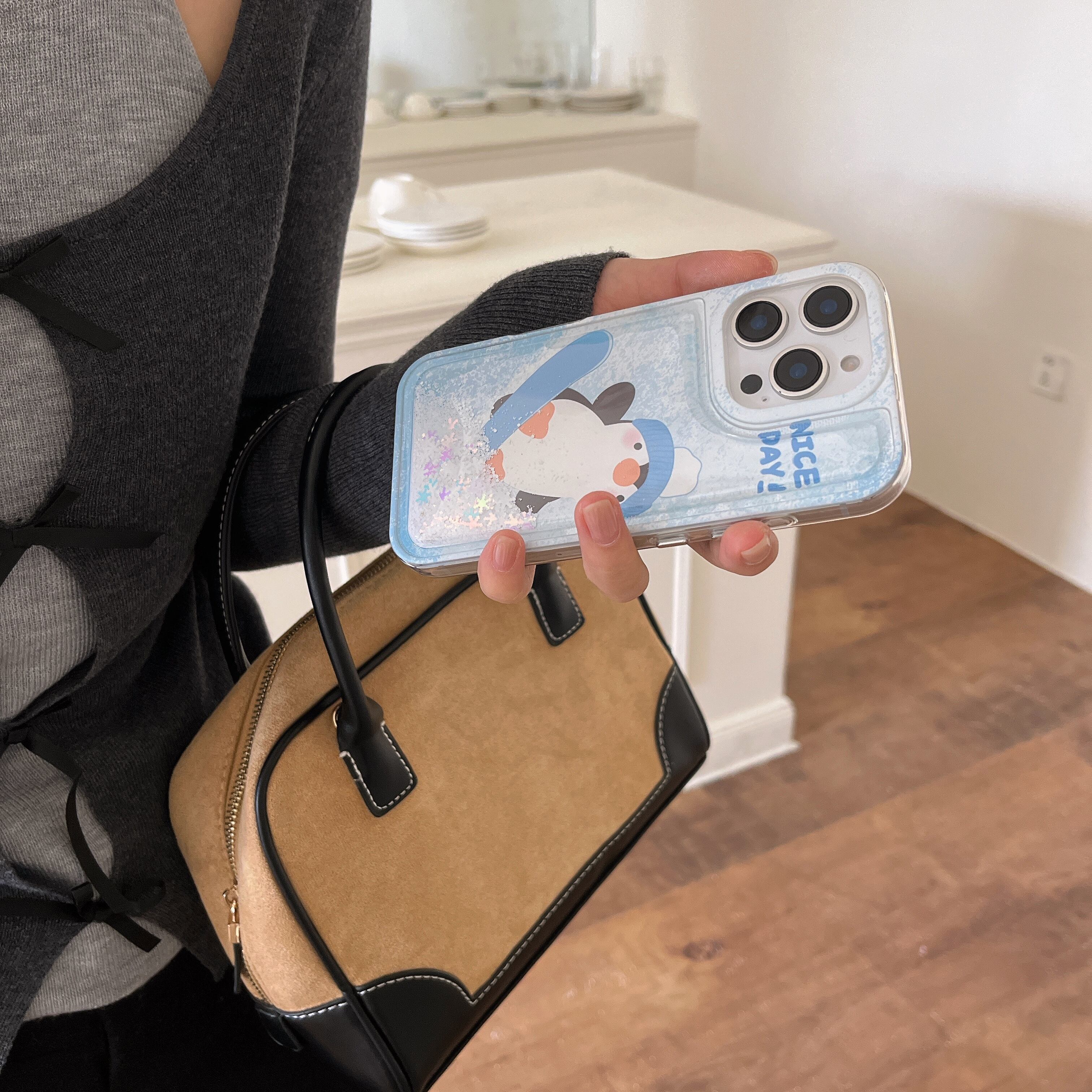 ラメ入り iPhone 16 15 14 13 ケース ペンギン クリアケース 可愛い キラキラ 透明 スマホカバー 耐衝撃