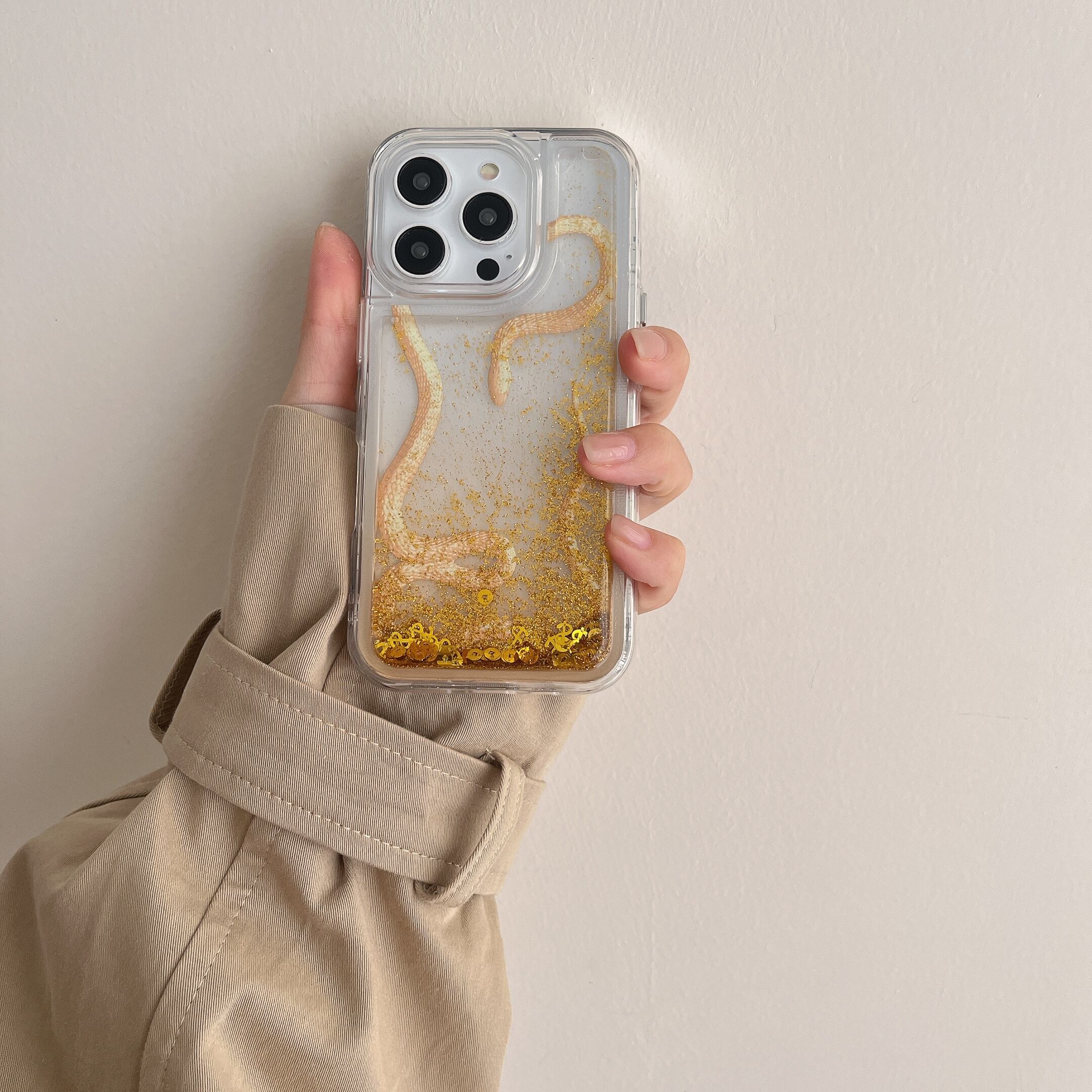 ラメ入り iPhone 16 15 14 13 ケース ヘビ クリアケース 可愛い キラキラ 透明 スマホカバー 耐衝撃