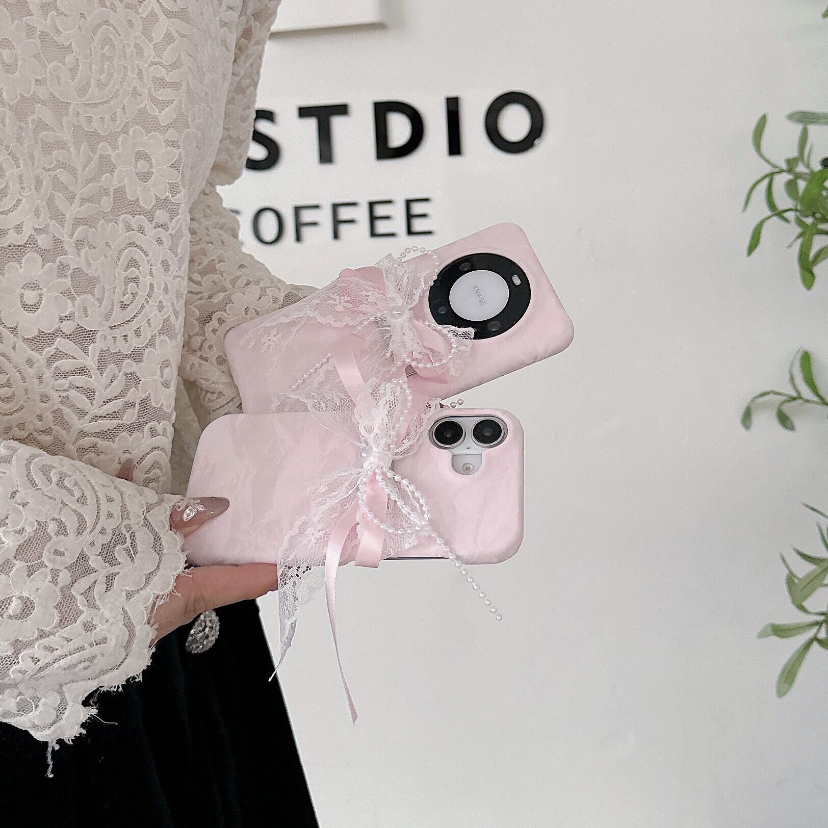 リボン iphone 16 15 14 13 12 11 ケース スタンド機能 かわいい puレザー スマホケース ピンク