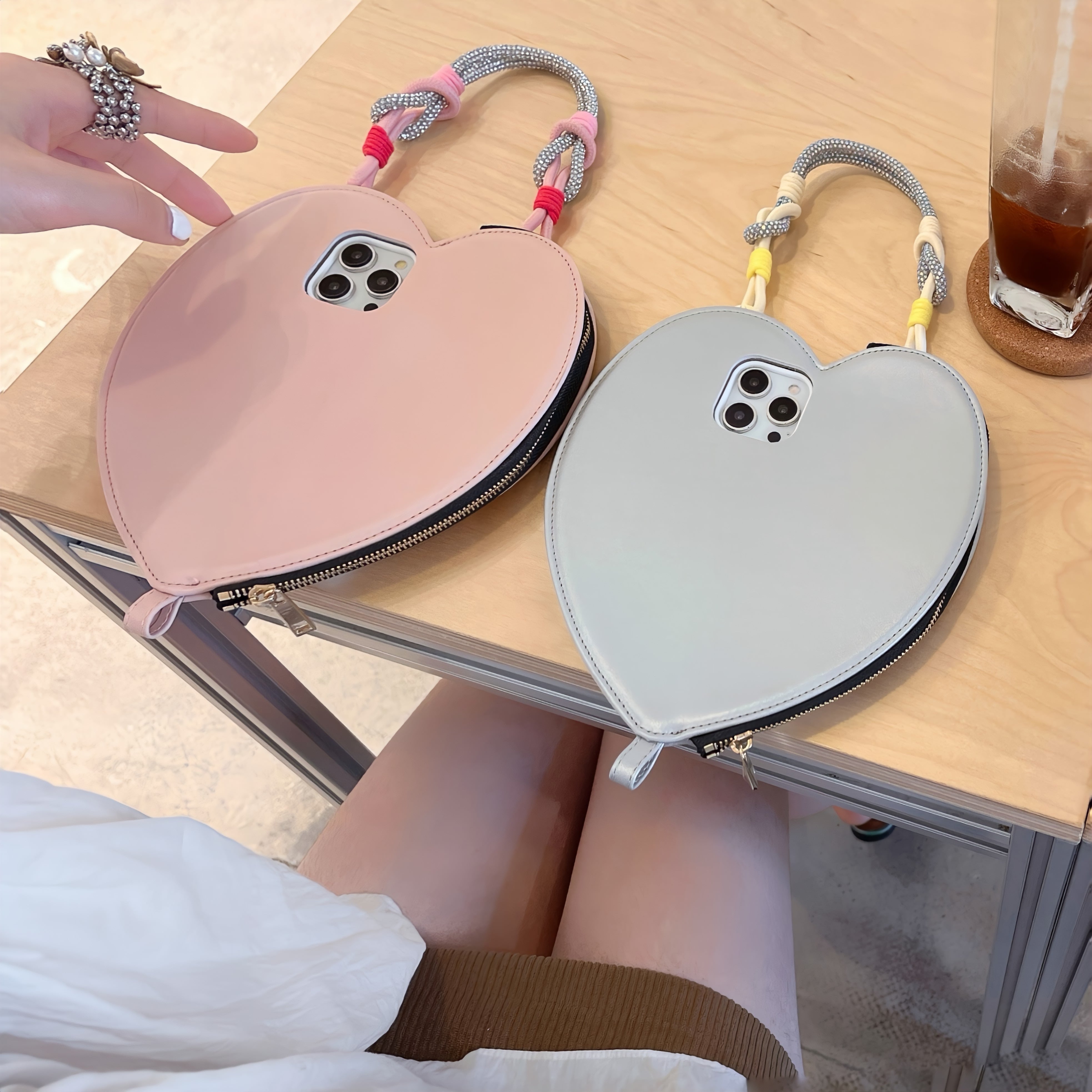 ハート型スマホケース, iPhone16 ケース, iPhone15 可愛いケース, iPhone14 おしゃれケース, iPhone13 バッグ型ケース, ハンドバッグ型スマホケース, ファスナー付きスマホケース, ポーチ一体型iPhoneケース, ガーリー スマホケース, iPhone ハートポーチケース, プレゼント向けiPhoneケース, 韓国風ケース レディース, ハンドストラップ付きケース