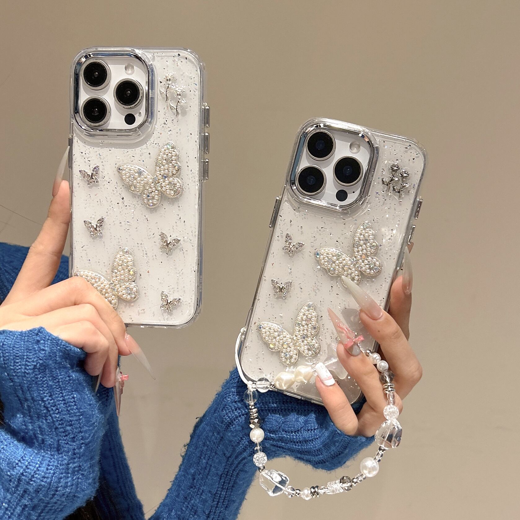 ラメ入りのクリアベースに、立体感ある蝶の装飾が映えるデザインは、