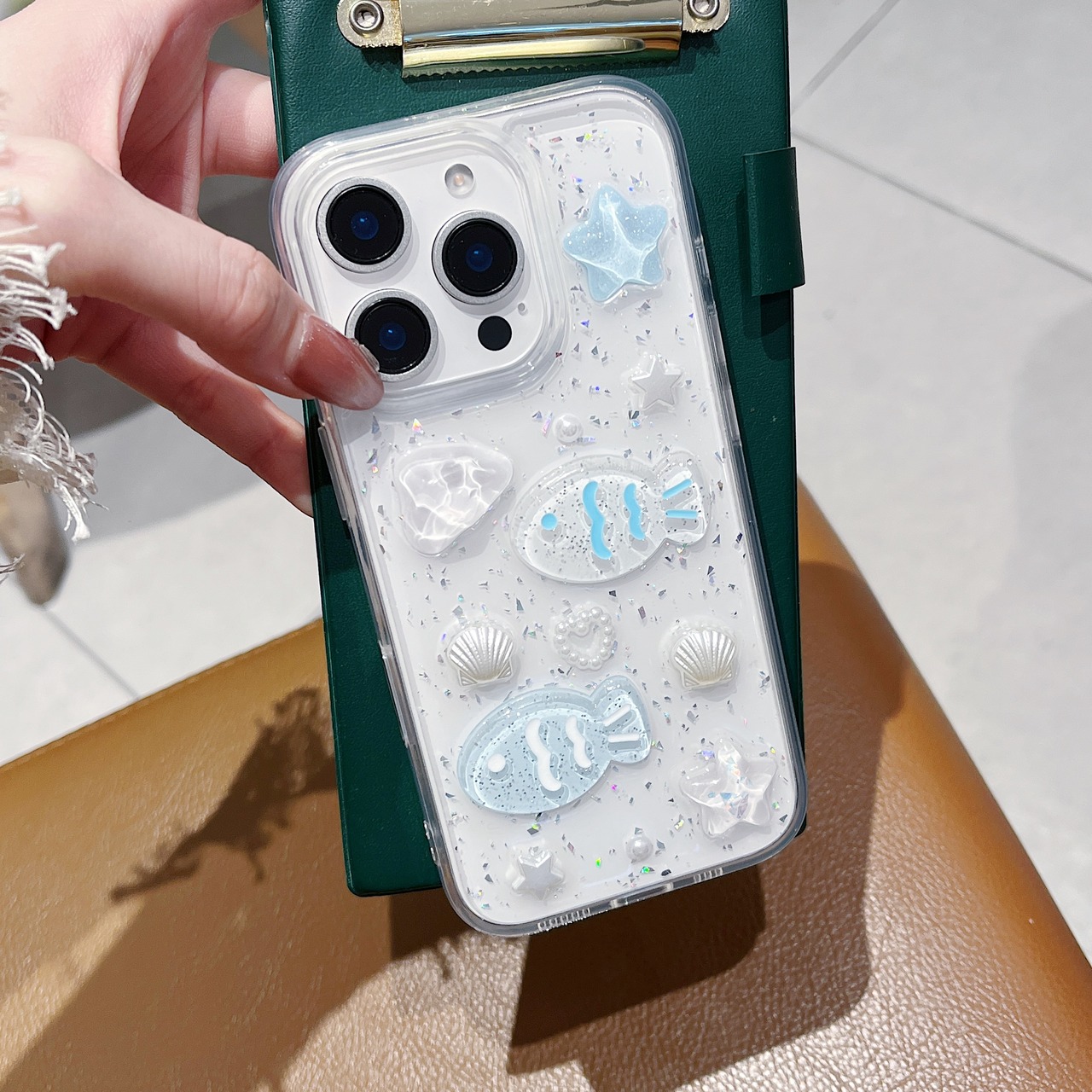 キラキラお魚&シェルのクリアスマホケース