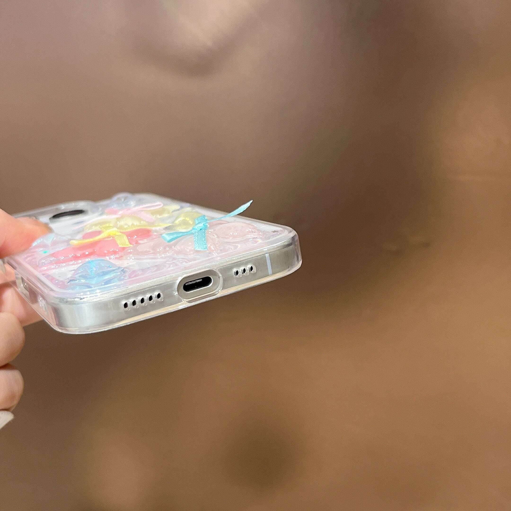 リボン付きパステルバタフライのキラキラクリアスマホケース