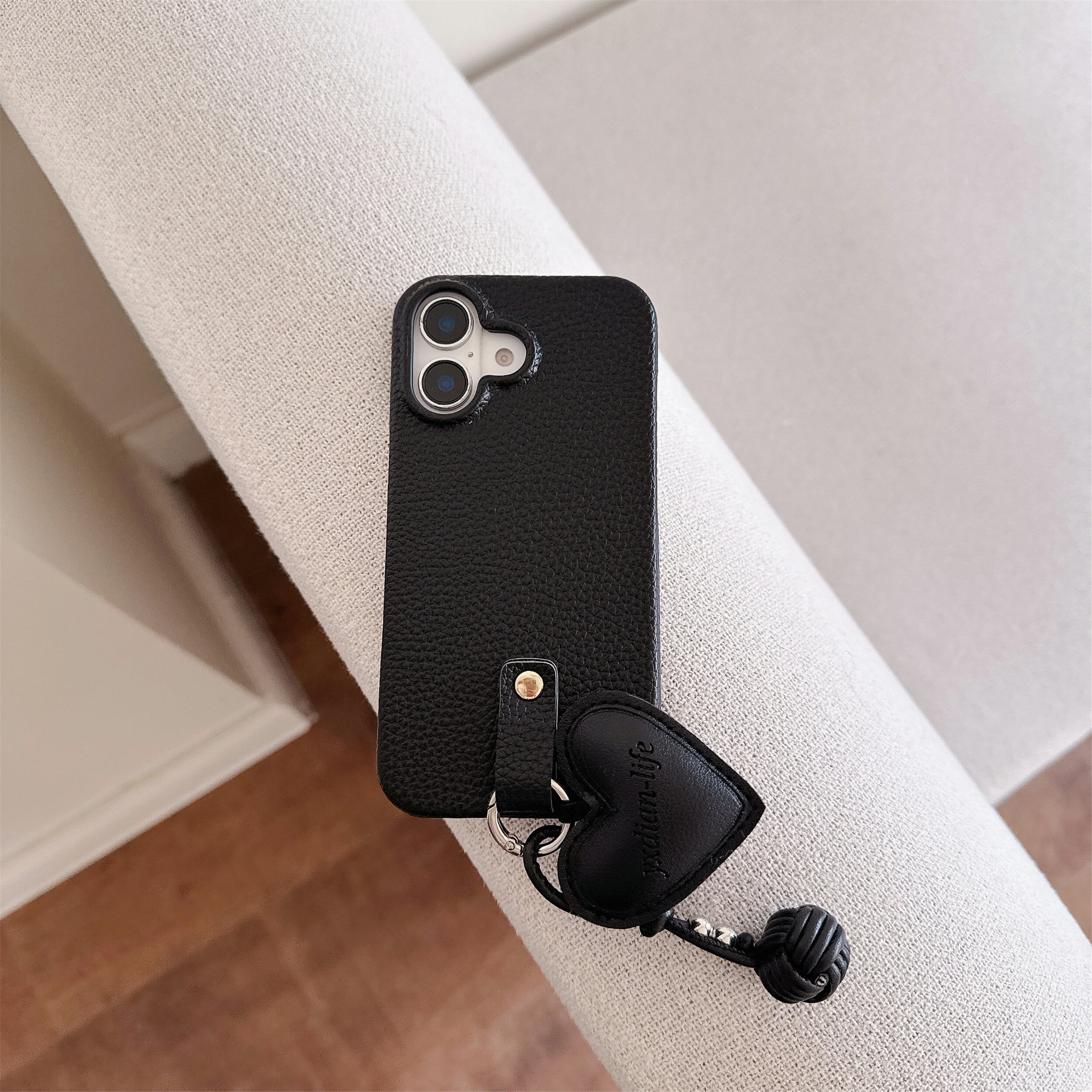 大人可愛い ハートチャーム付き iPhone 16 15 14 13 12 11 ケースストラップ付きスマホカバー