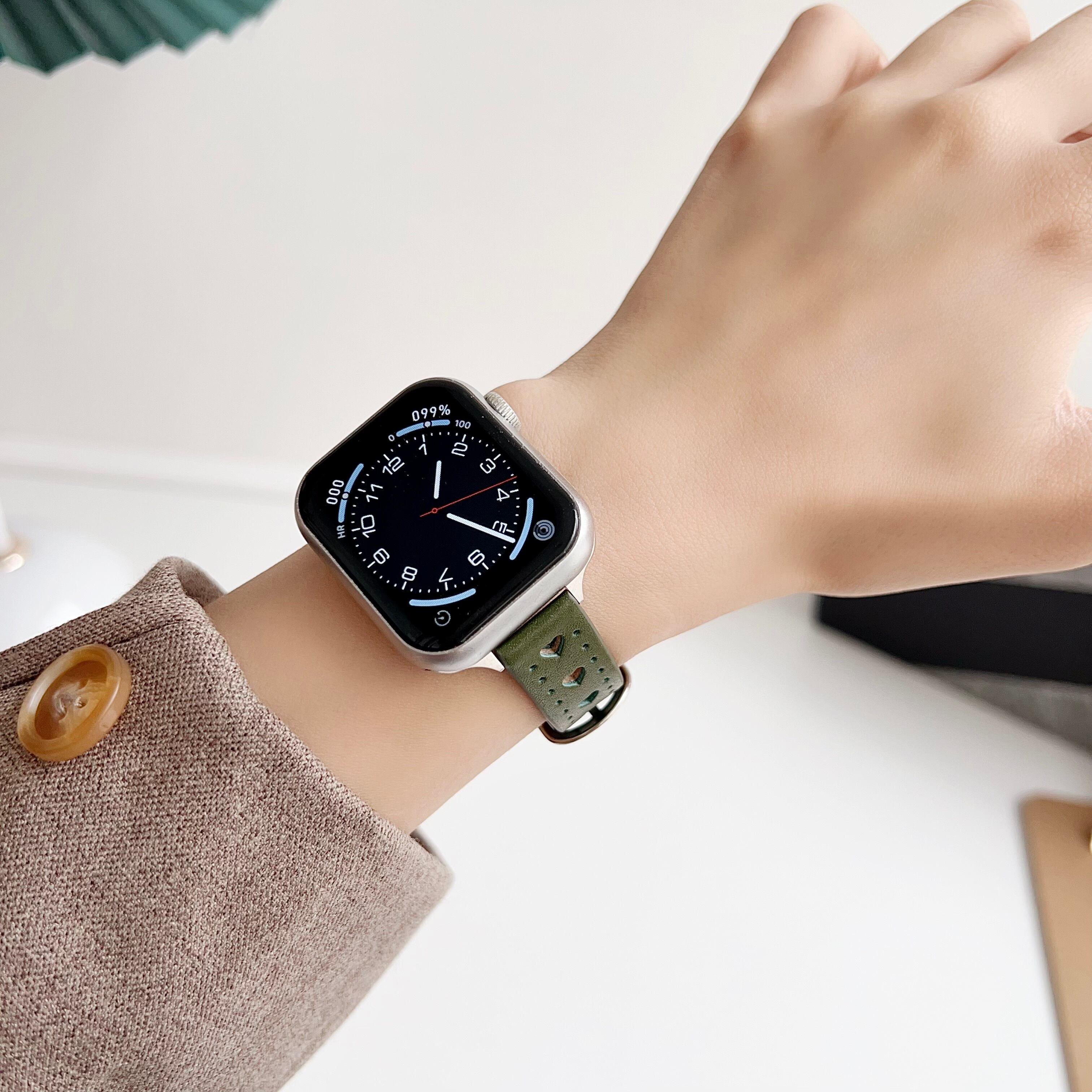 【大人可愛いを手元に】ハート型ホール×本革Apple Watchバンド