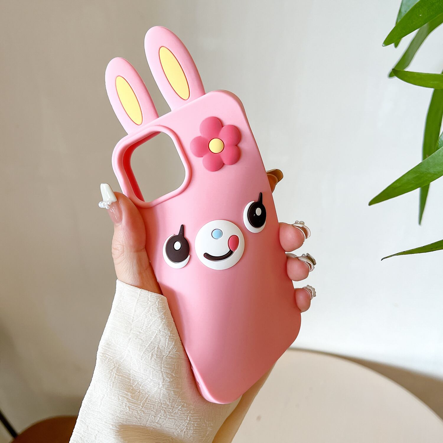 ピンクのうさぎ iPhone 16 15 14 13 ケース 可愛い シリコンケース 韓国風 スマホカバー 耐衝撃