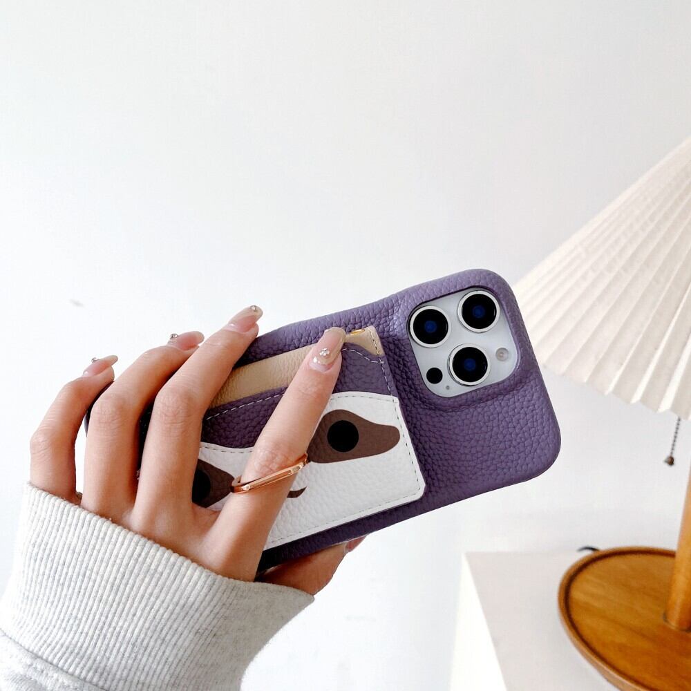 ・たぬき顔カードポケット付きスマホケース(PUレザー製)