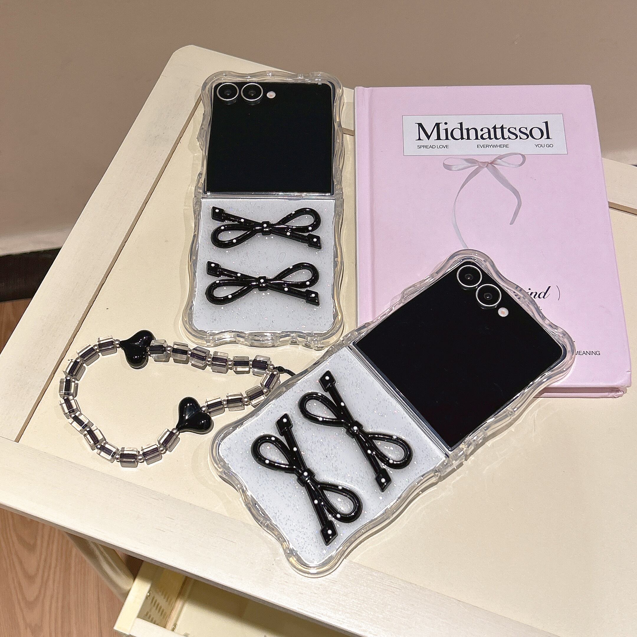 Galaxy Z Flip7 ケース / 韓国雑貨 / ウェーブフレーム / 透明感 / イラスト / ゆるかわ / 大人可愛い / 推し活グッズ / スマホストラップ対応