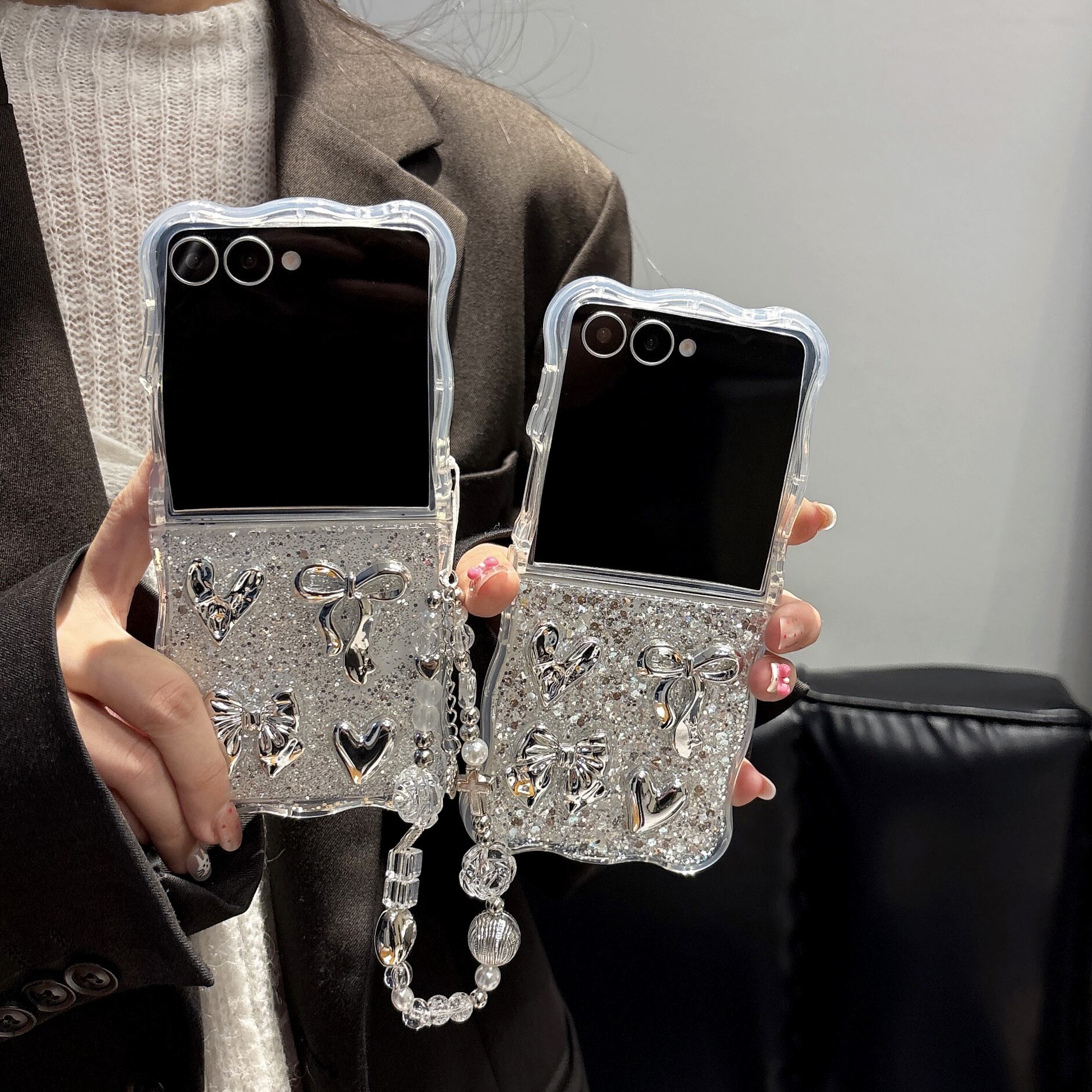 ラメ×リボン×ハート 透明感かわいいデコケース