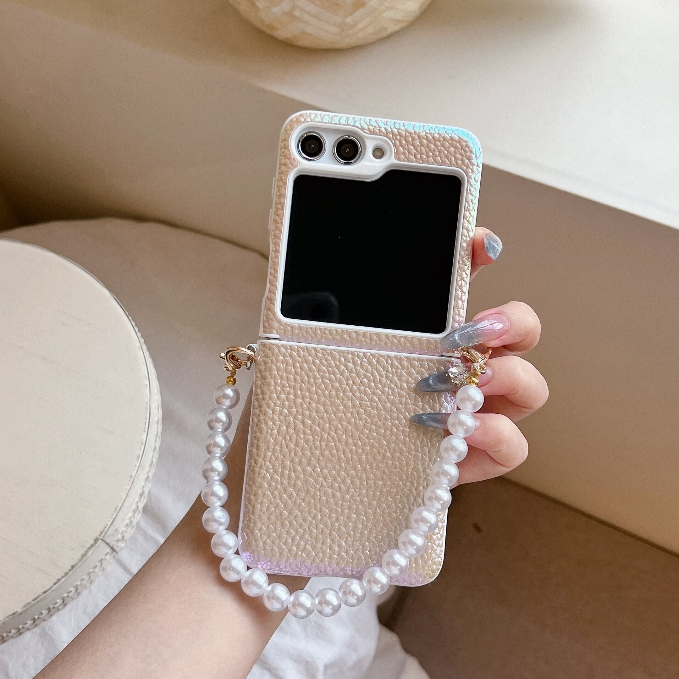 パールストラップ付き Galaxy Z Flip 7 6 5 4 3 ケース おしゃれ スマホケース オーロラ柄