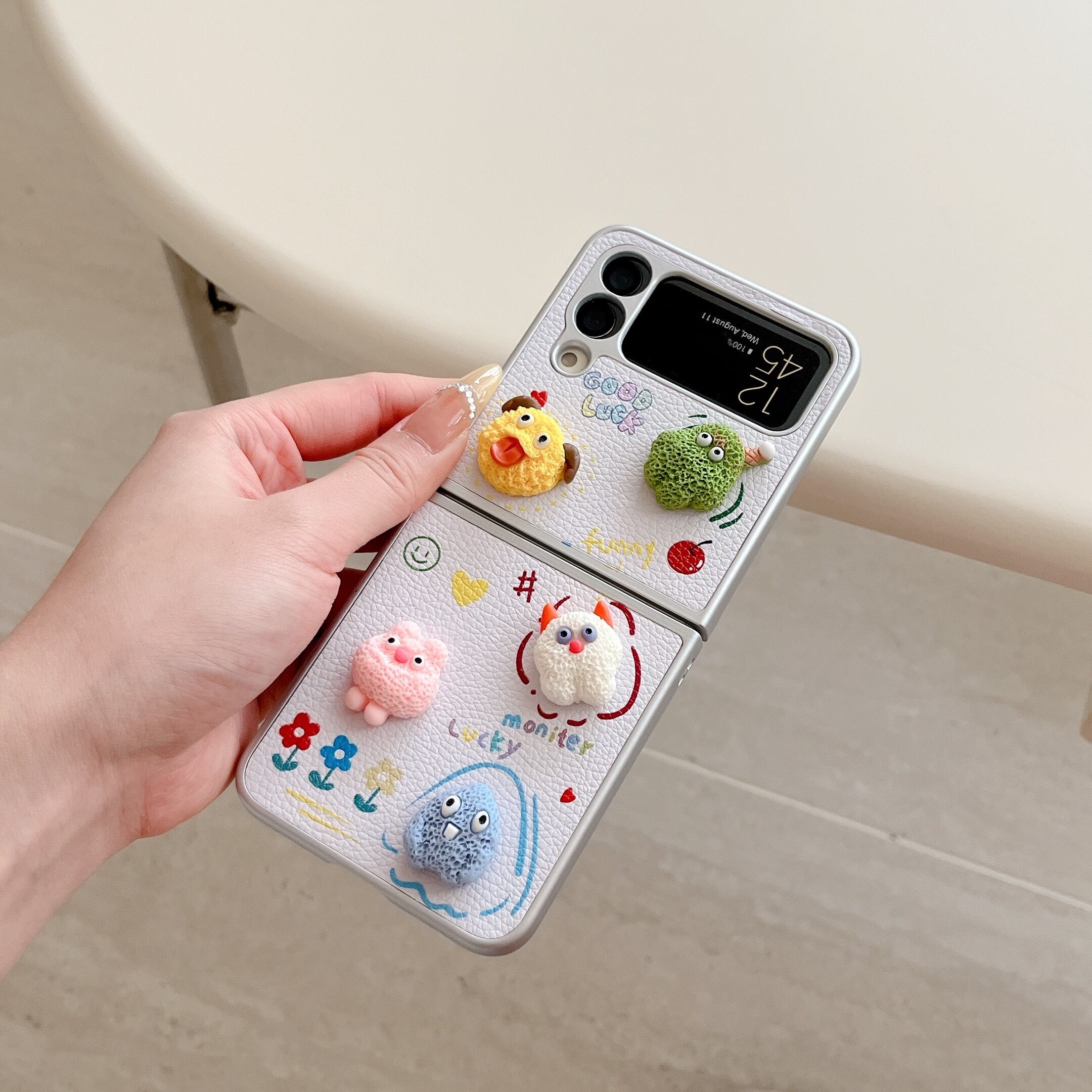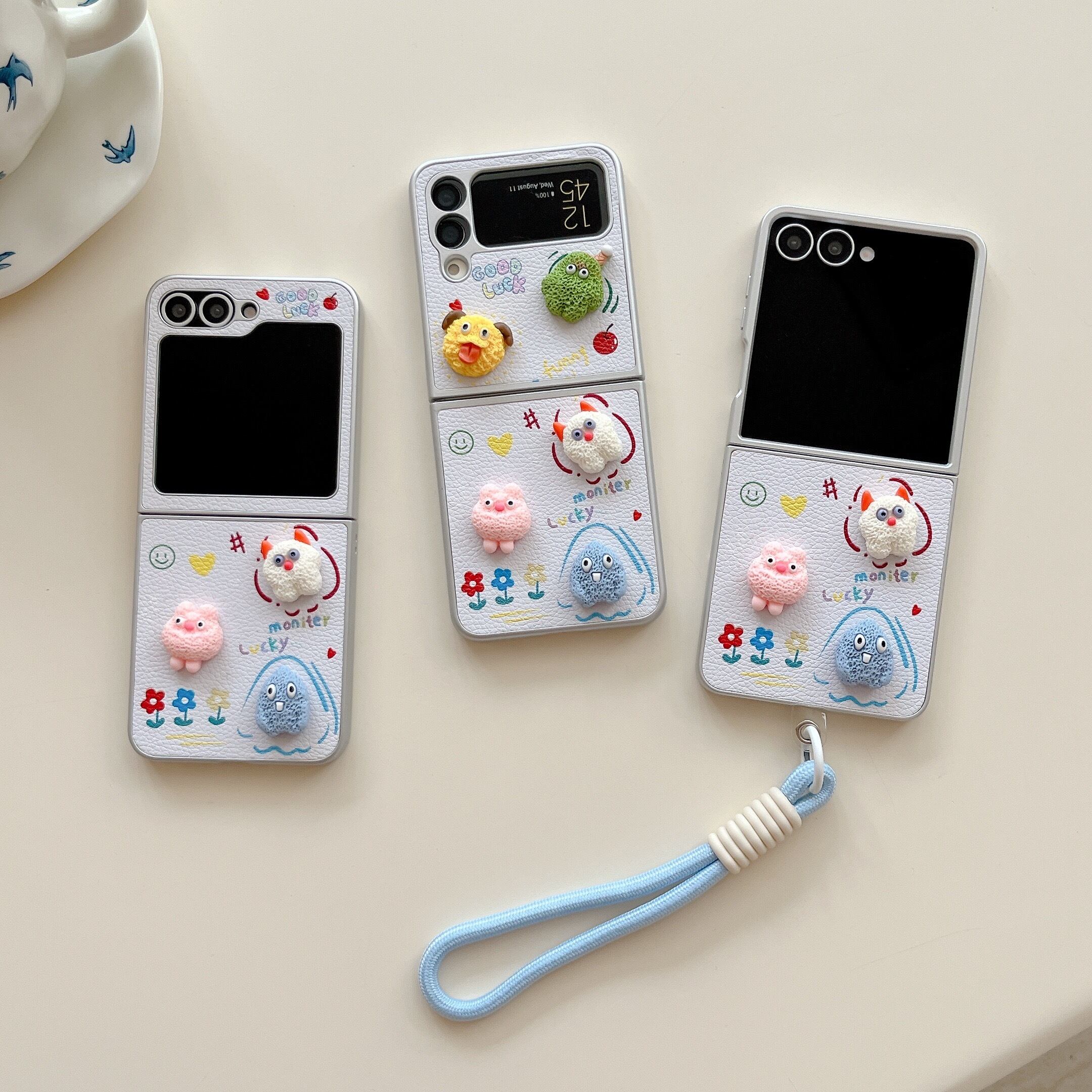 モンスターモチーフ Galaxy Z Flip 7 6 5 4 3 ケース 可愛い ハンドストラップ付き スマホケース