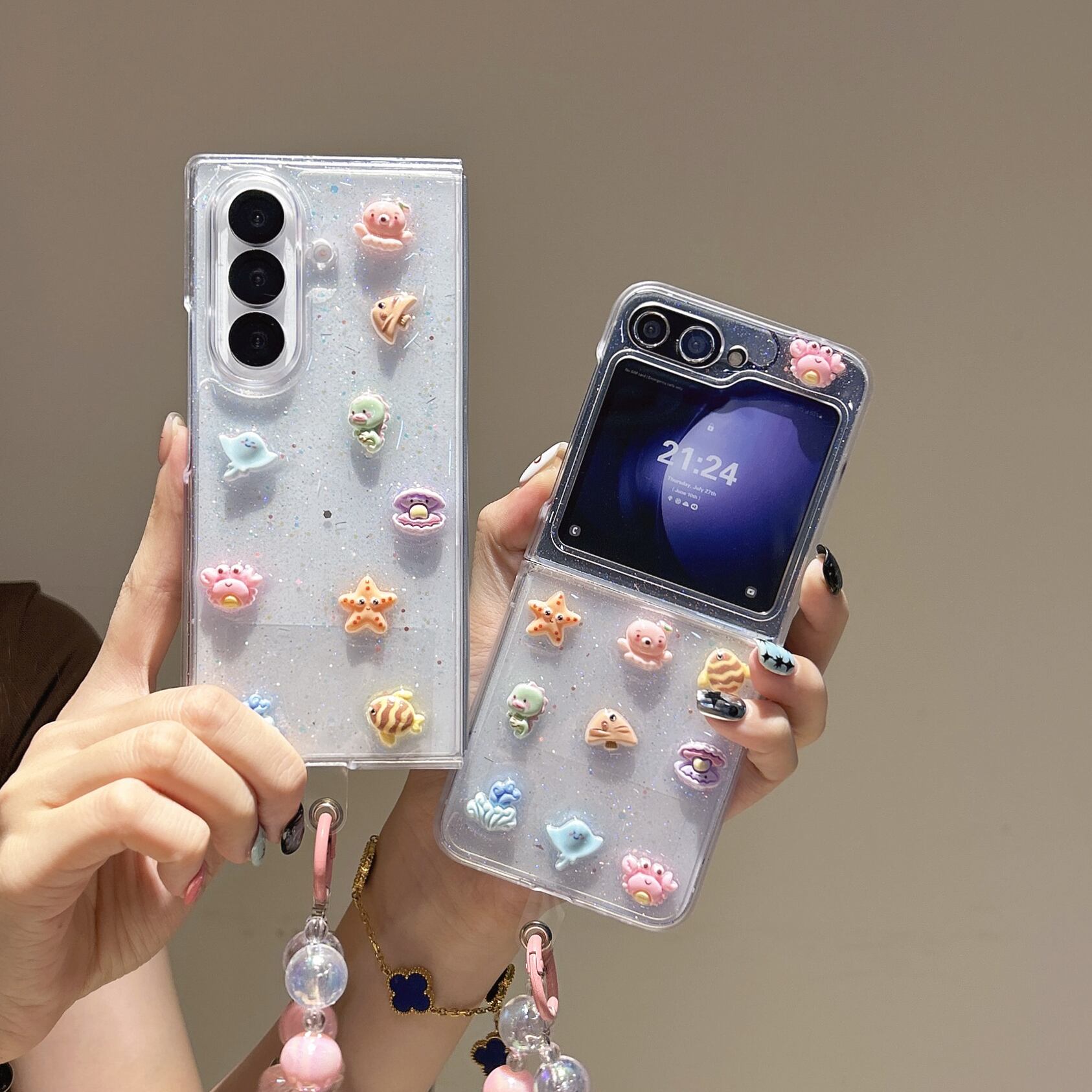 ラメ×シーワールド×海洋生物 透明感かわいいデコケース
