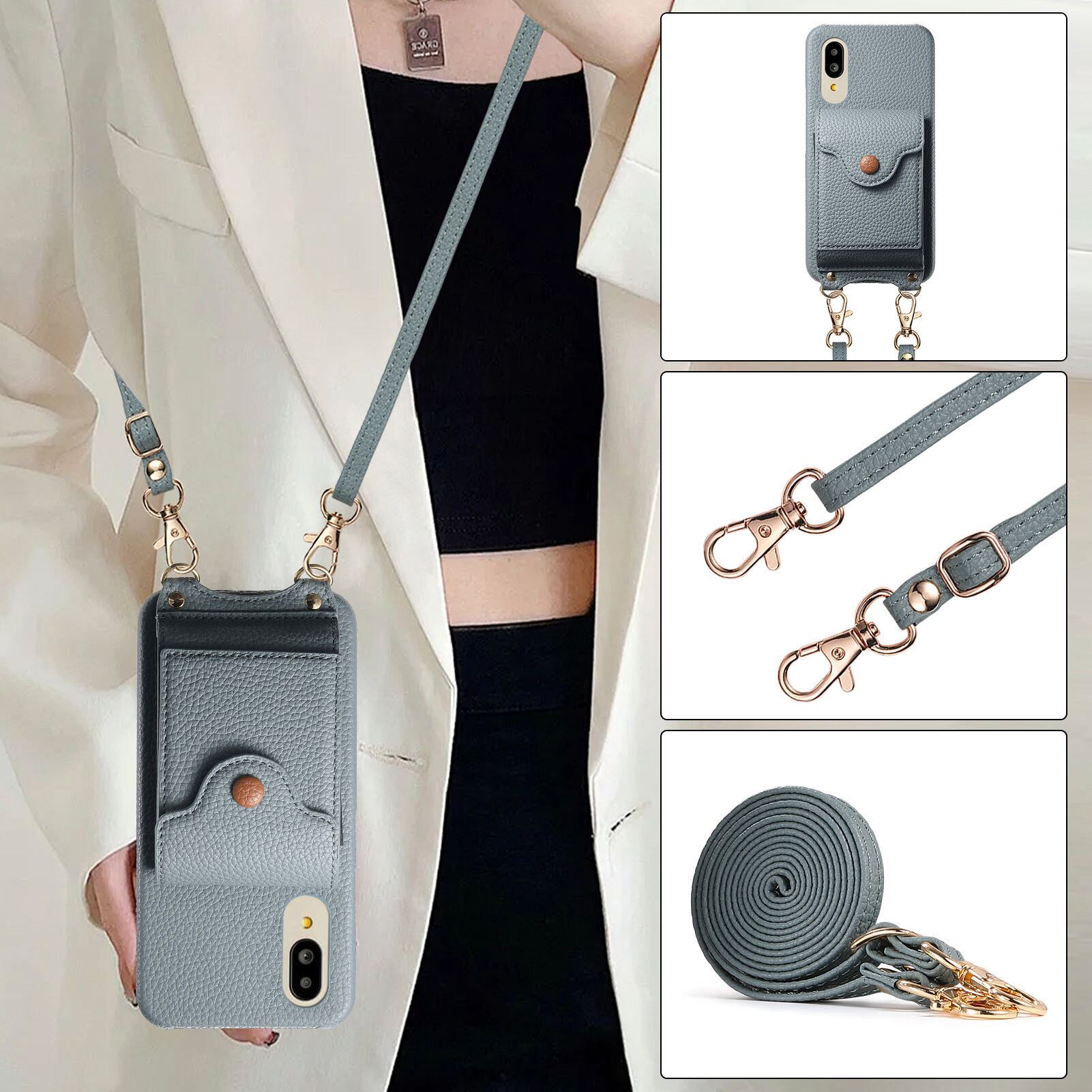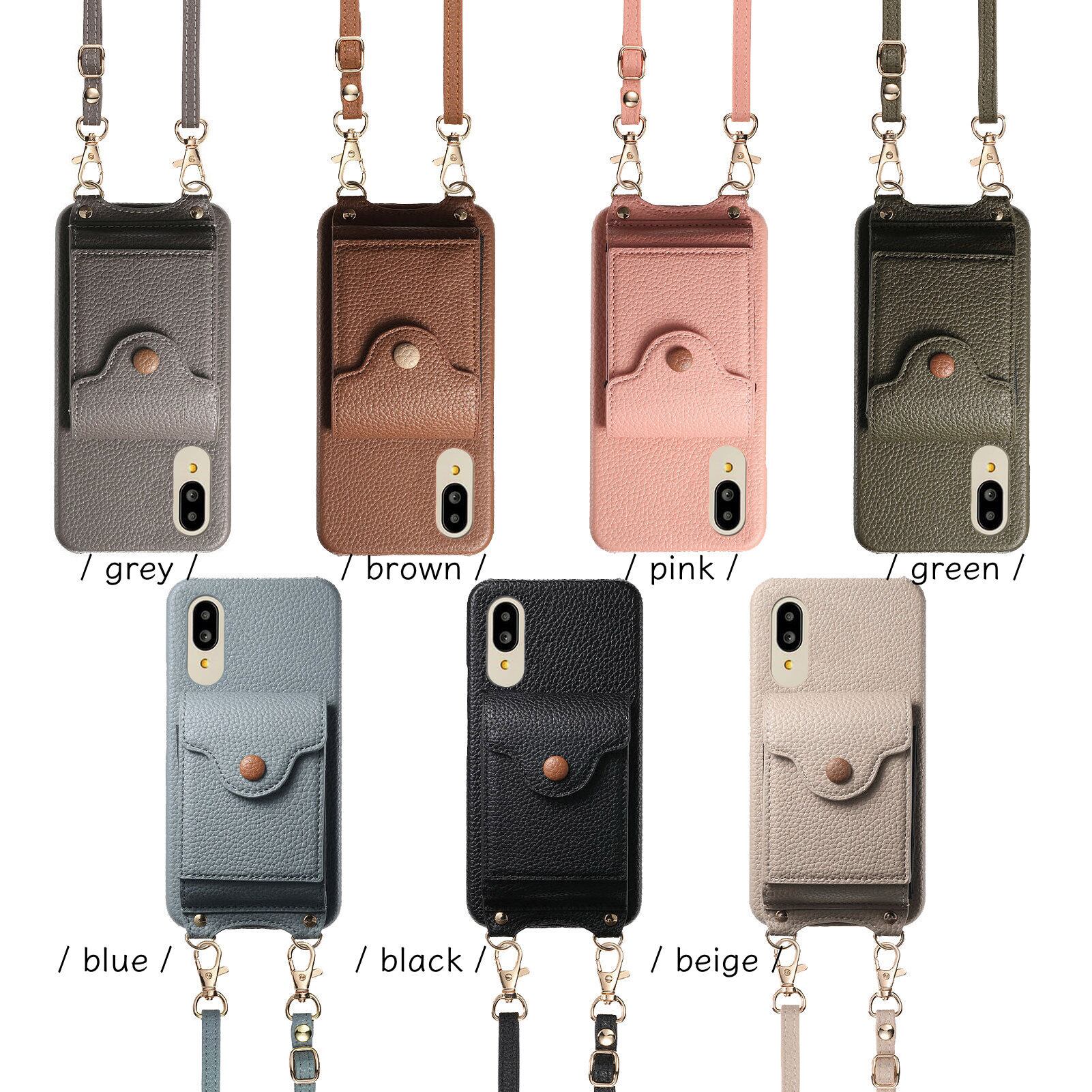 AQUOS スマホ6対応 スマホショルダーケース カード収納&ミラー付き PUレザー製 多機能 スマホカバー