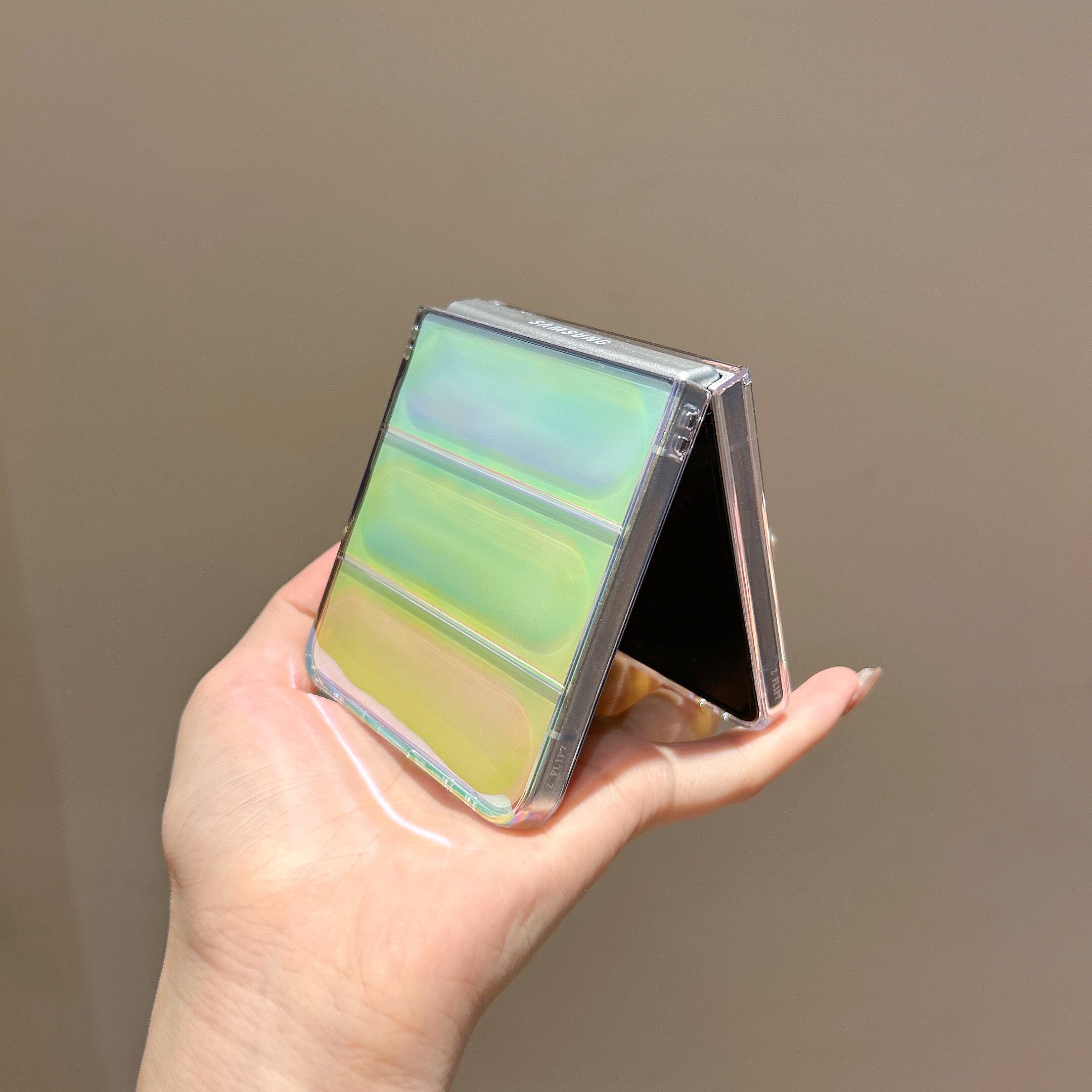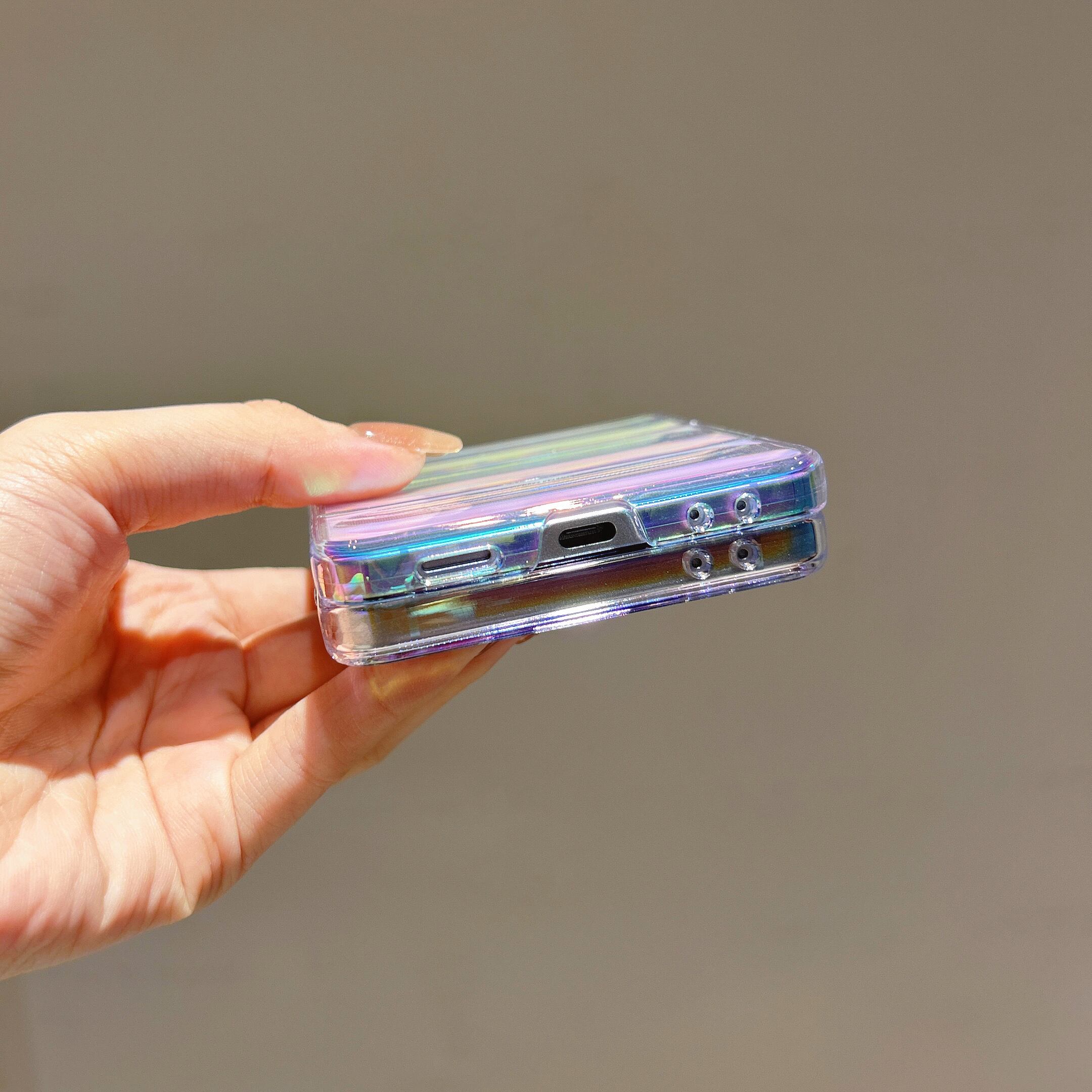 オーロラ柄 Galaxy Z Flip 7 6 5 4 3 ケース 透明感 かわいい ダウン風 クリアケース ビーズストラップ