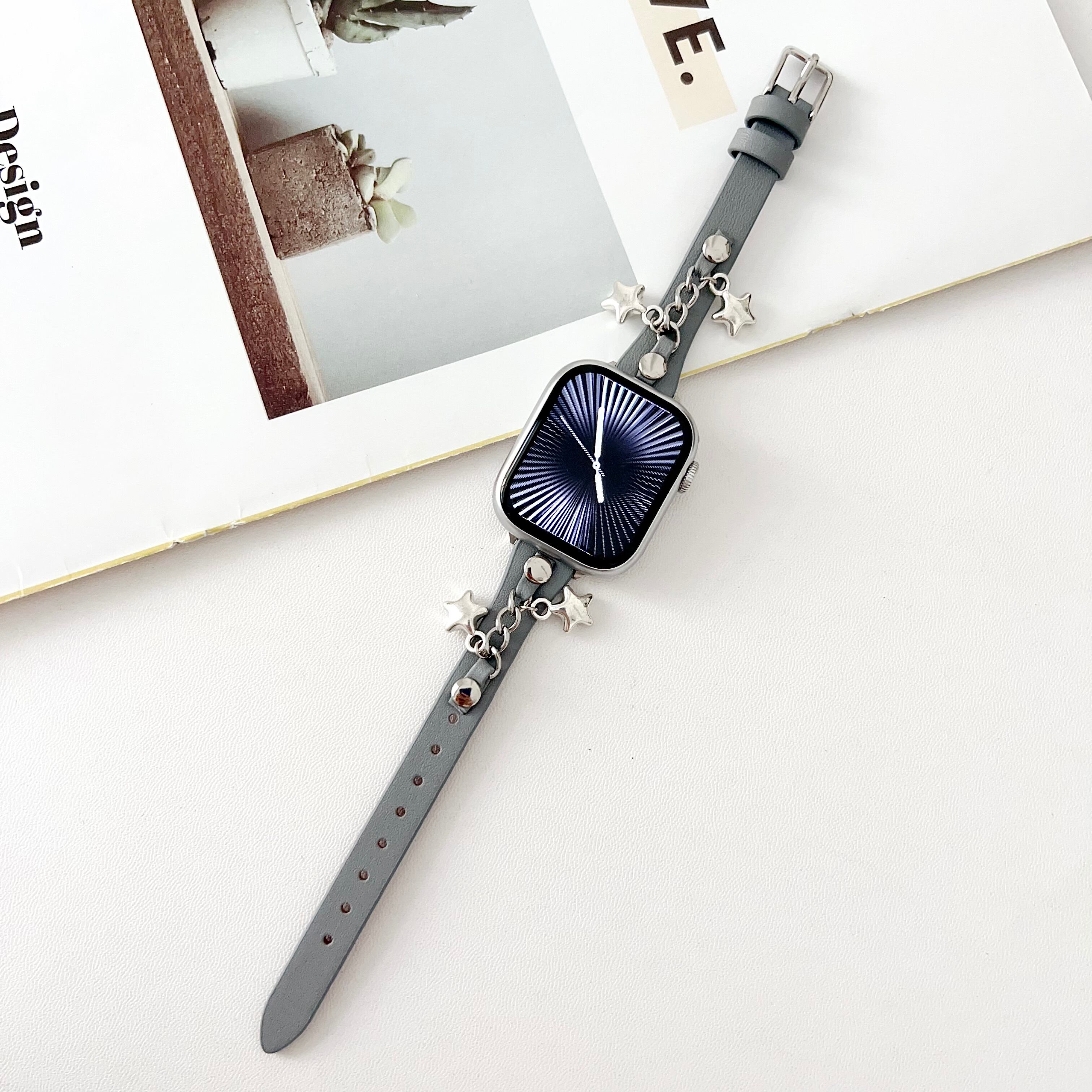 シンプルな細めレザーベルトに、ゆらゆら揺れるチェーンや星モチーフをプラスすることで、