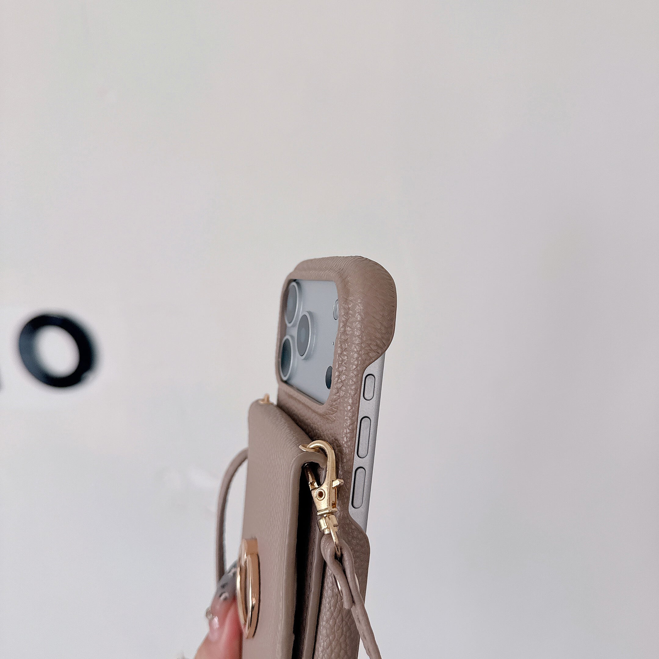 iPhone17シリーズ対応 くすみカラーPUレザー スマホショルダーケース