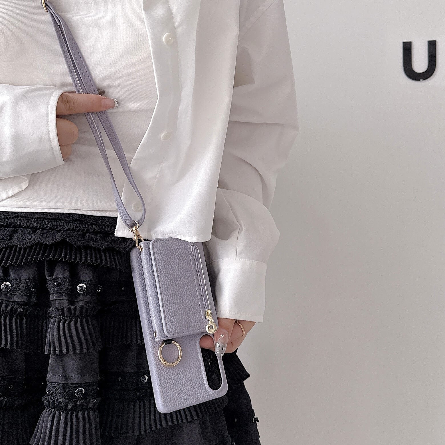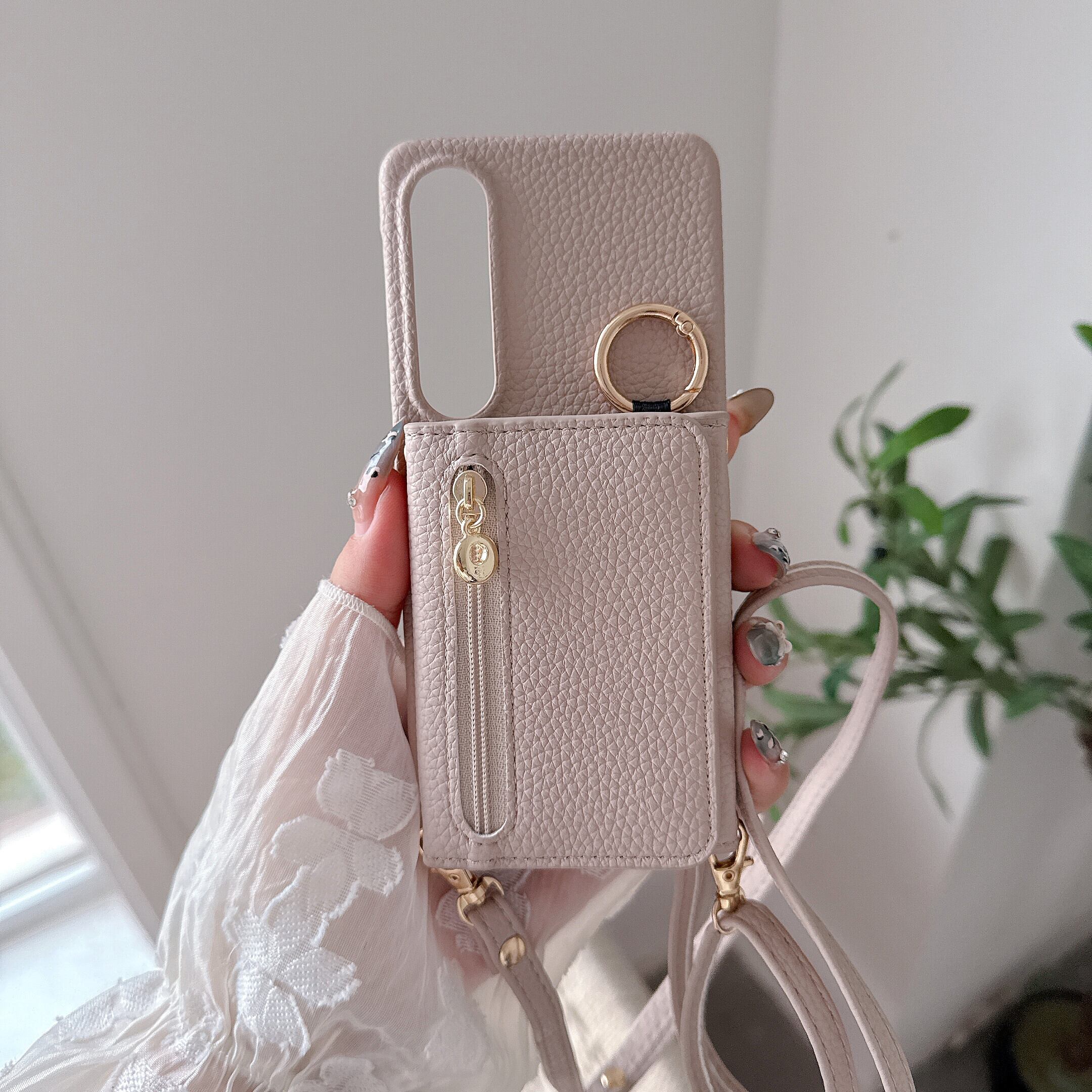 三つ折り Xperia 1 / 5 / 10 ケース おしゃれ スマホショルダー カード収納 ファスナーポケット