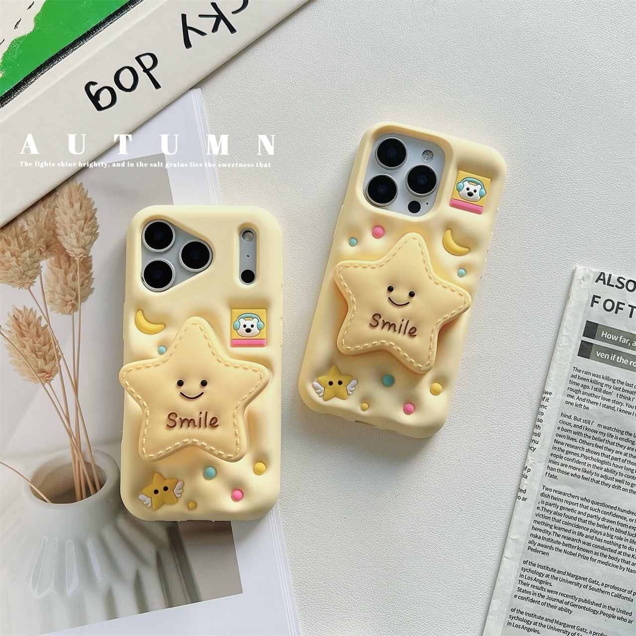 スマイルスター iPhone 17 16 15 14 13 12 11 ケース 笑顔 星 シリコン 韓国風 スタンド機能付き スマホケース