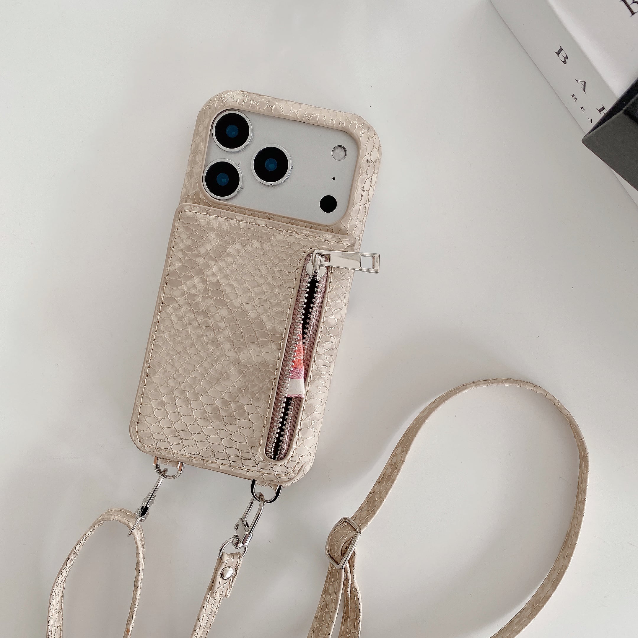 iPhone17シリーズ対応 パイソン柄PUレザー スマホショルダーケース