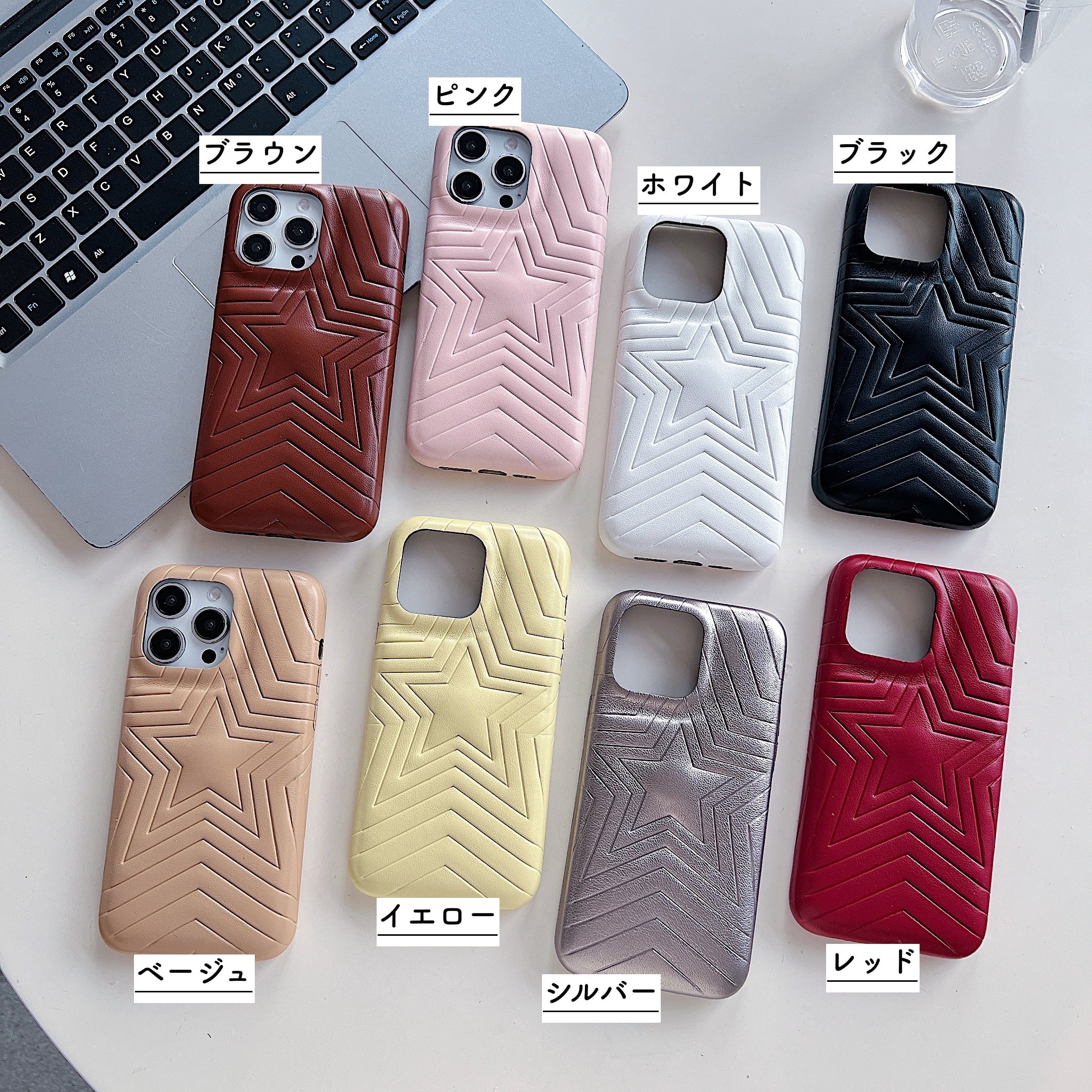 星型押し iphone 17 16 15 14 13 12 ケース おしゃれ スマホケース puレザー スマホカバー