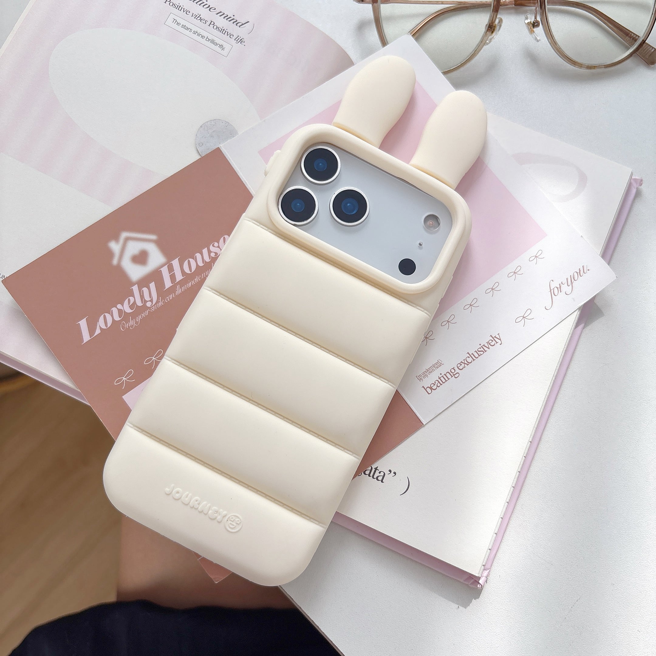 耳付き ダウン風 iPhone 17 16 15 14 13 ケース シリコン 可愛い うさみみ クマ耳 猫耳 小悪魔 スマホカバー 耐衝撃