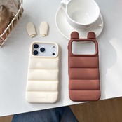 耳付きダウン風のデザインがとってもキュートなiPhoneケース。