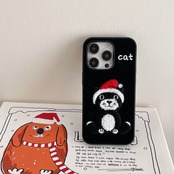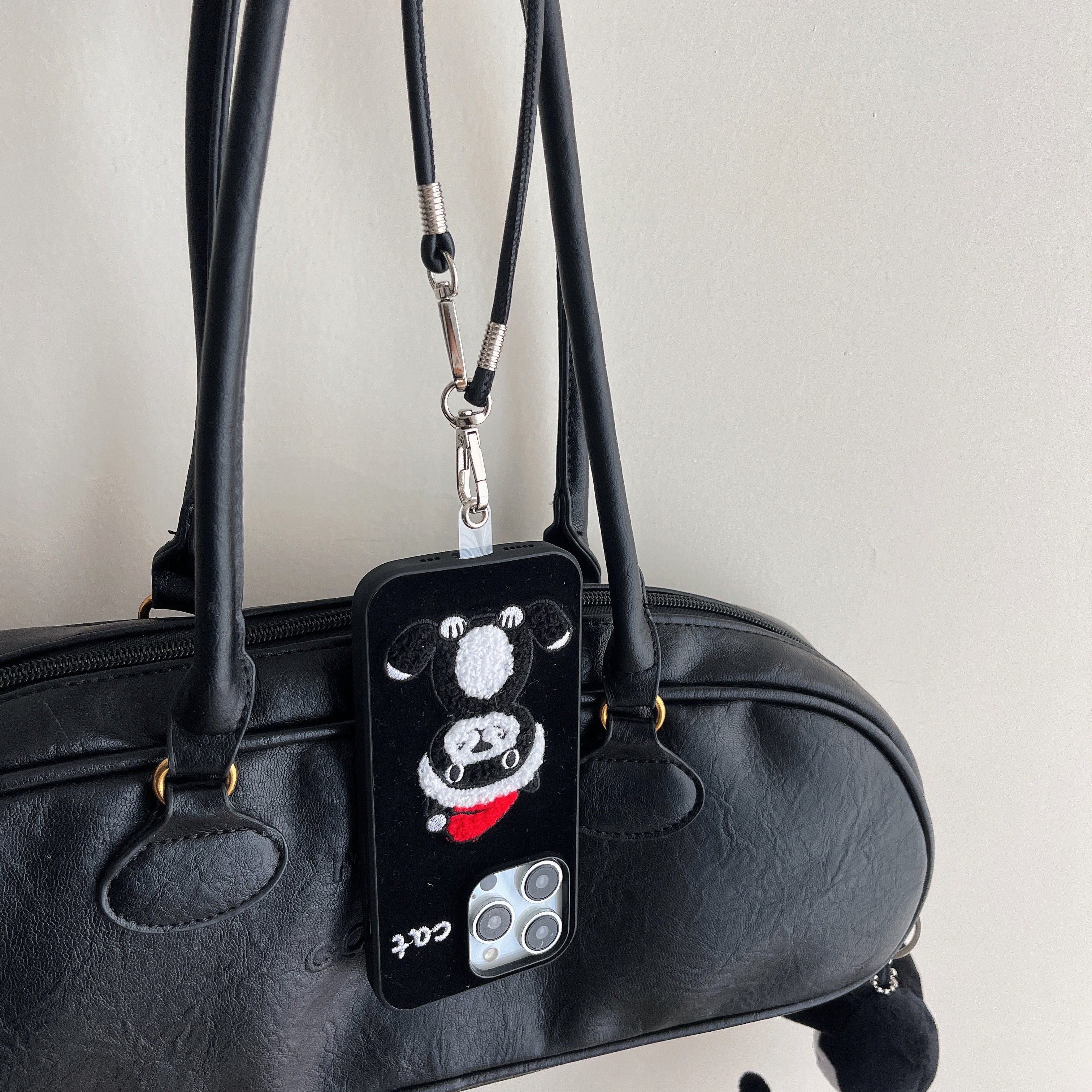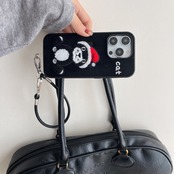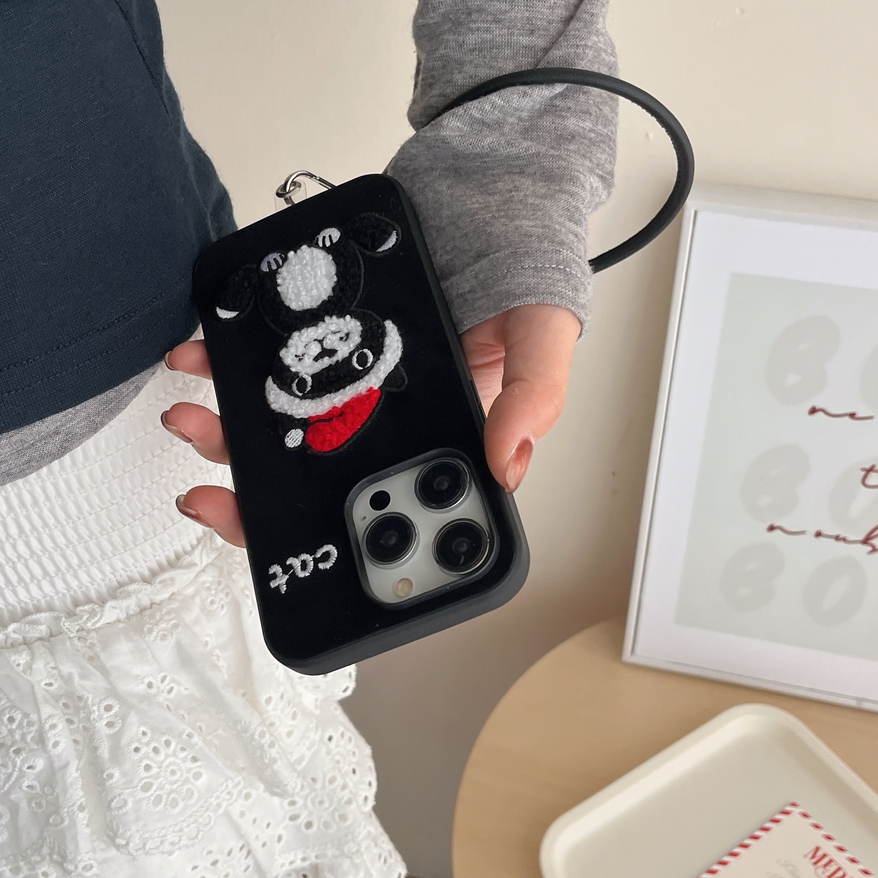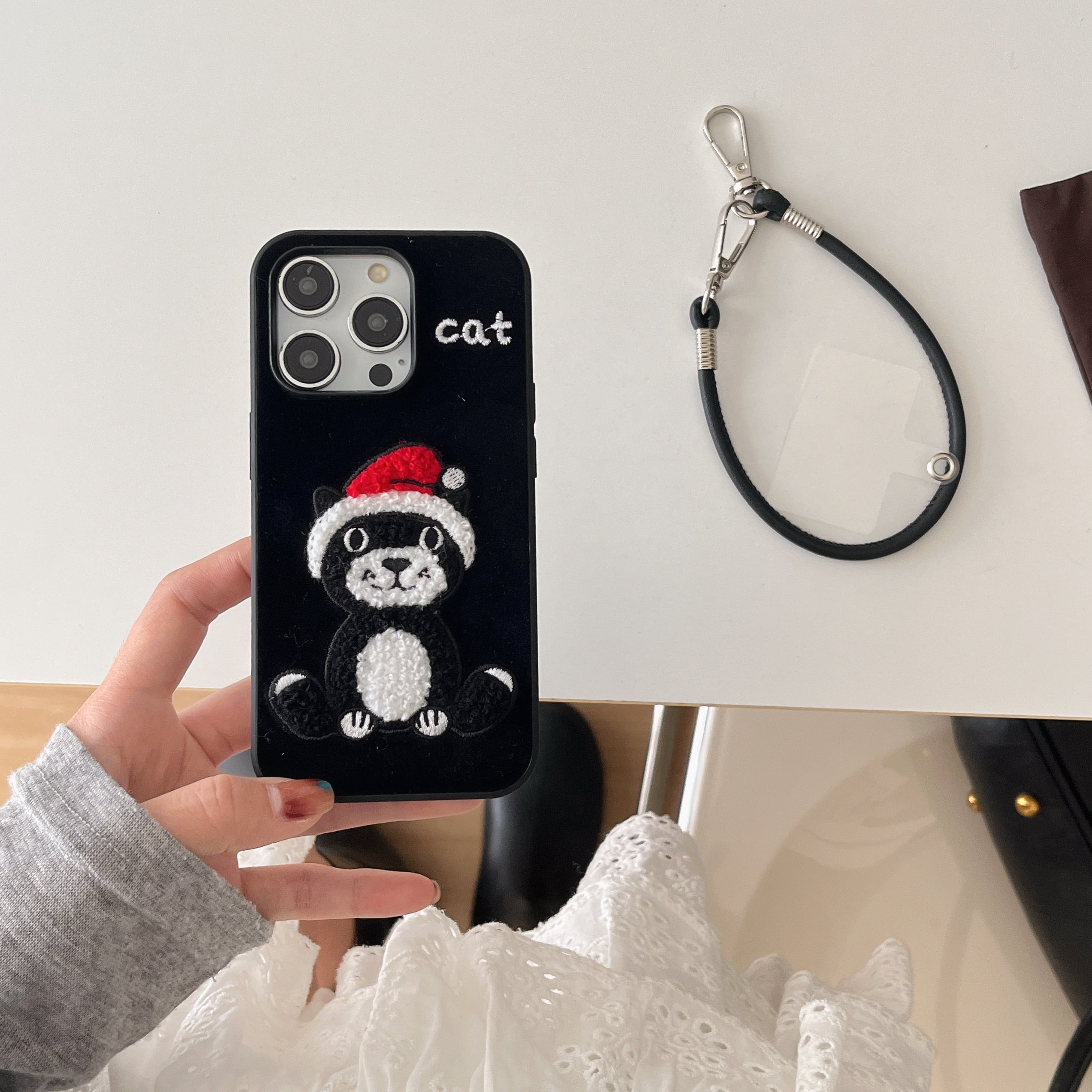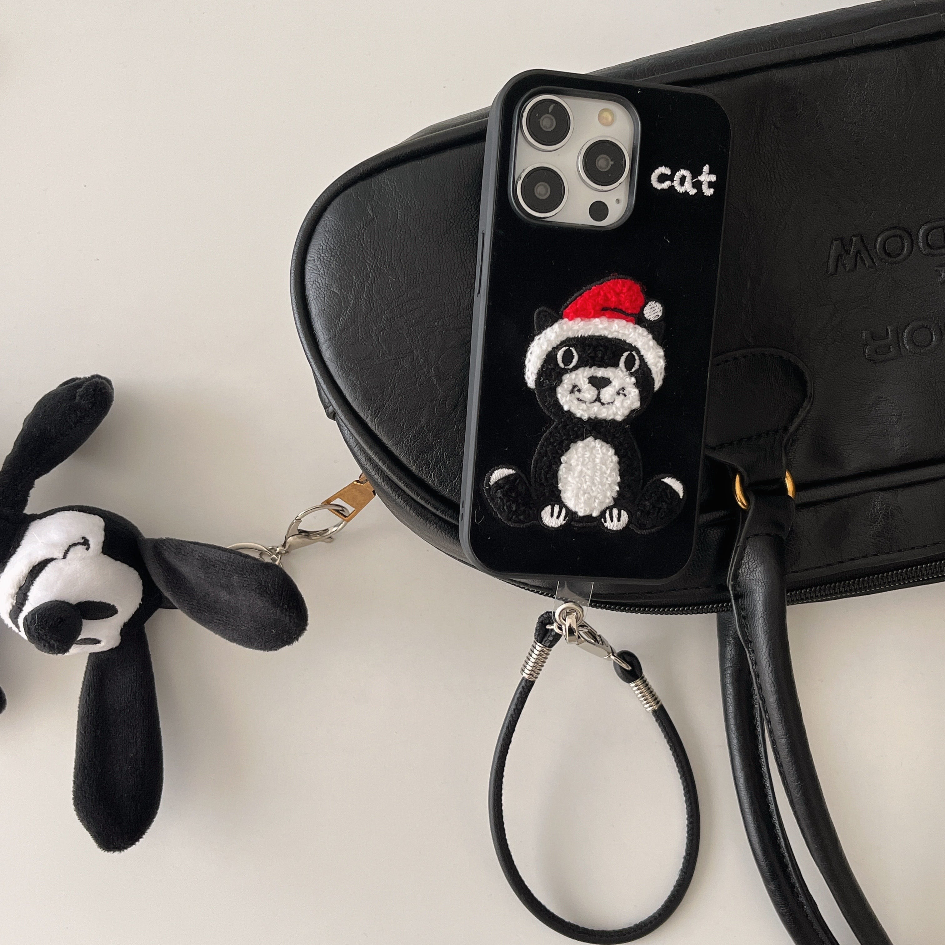動物刺繍 iphone17 16 15 14 13 12 11 ケース 可愛い 黒猫 ねこちゃん ハンドストラップ スマホケース