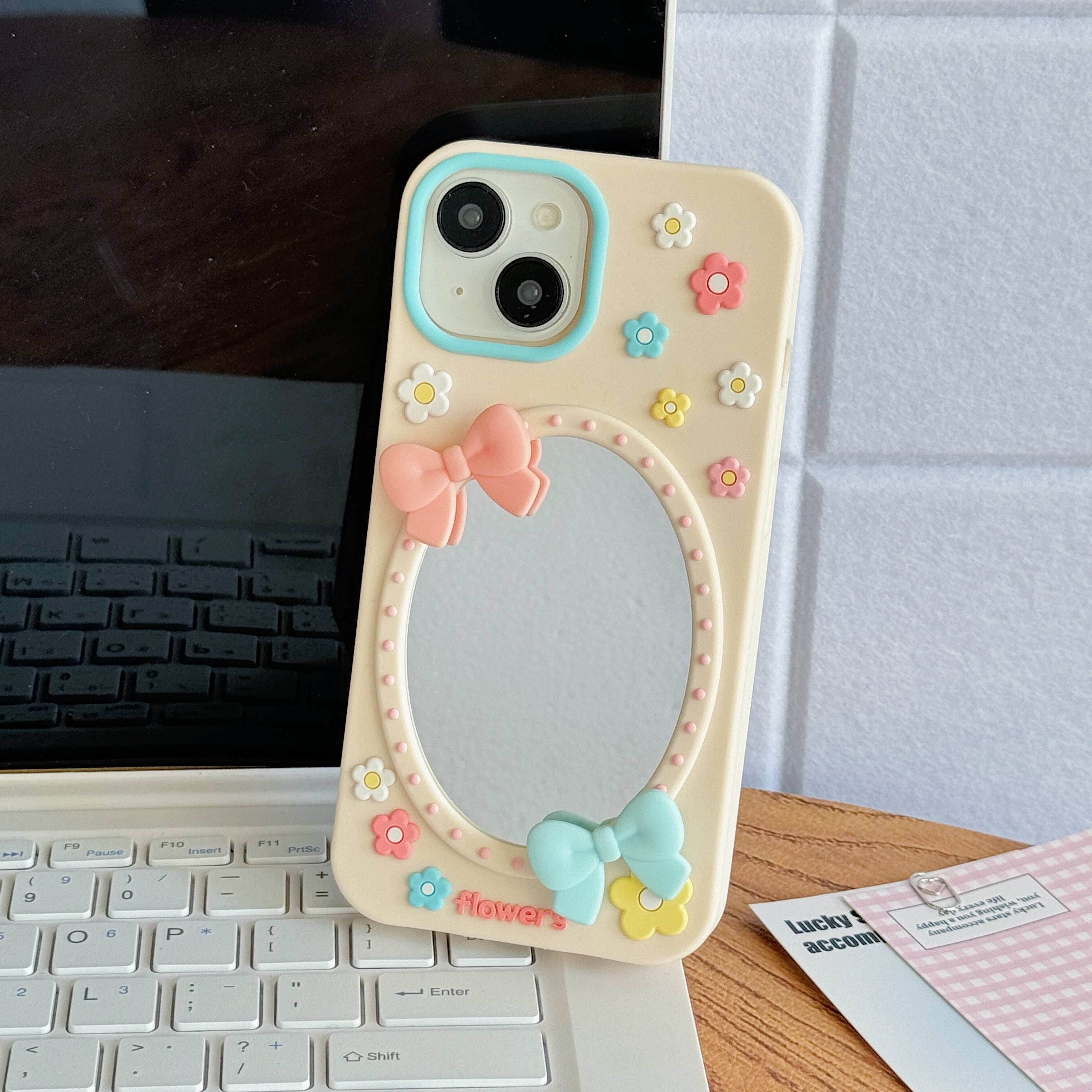 ミラー付き iPhone 17 16 15 14 13 12 11 ケース かわいい リボン フラワー シリコンケース かわいい スマホカバー