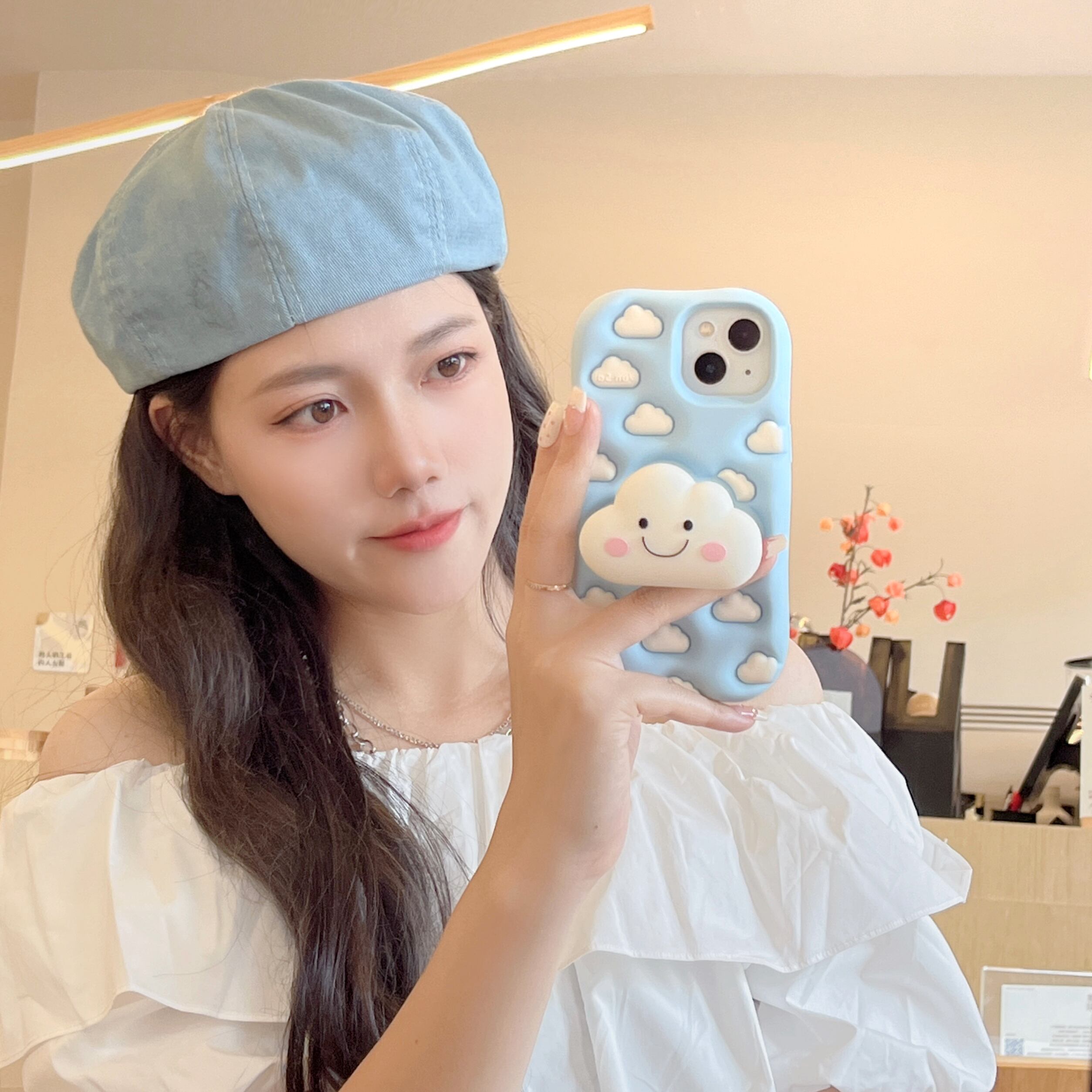 白い雲 iPhone 16 15 14 13 ケース かわいい シリコン スタンド機能付き 雲型 スマホケース