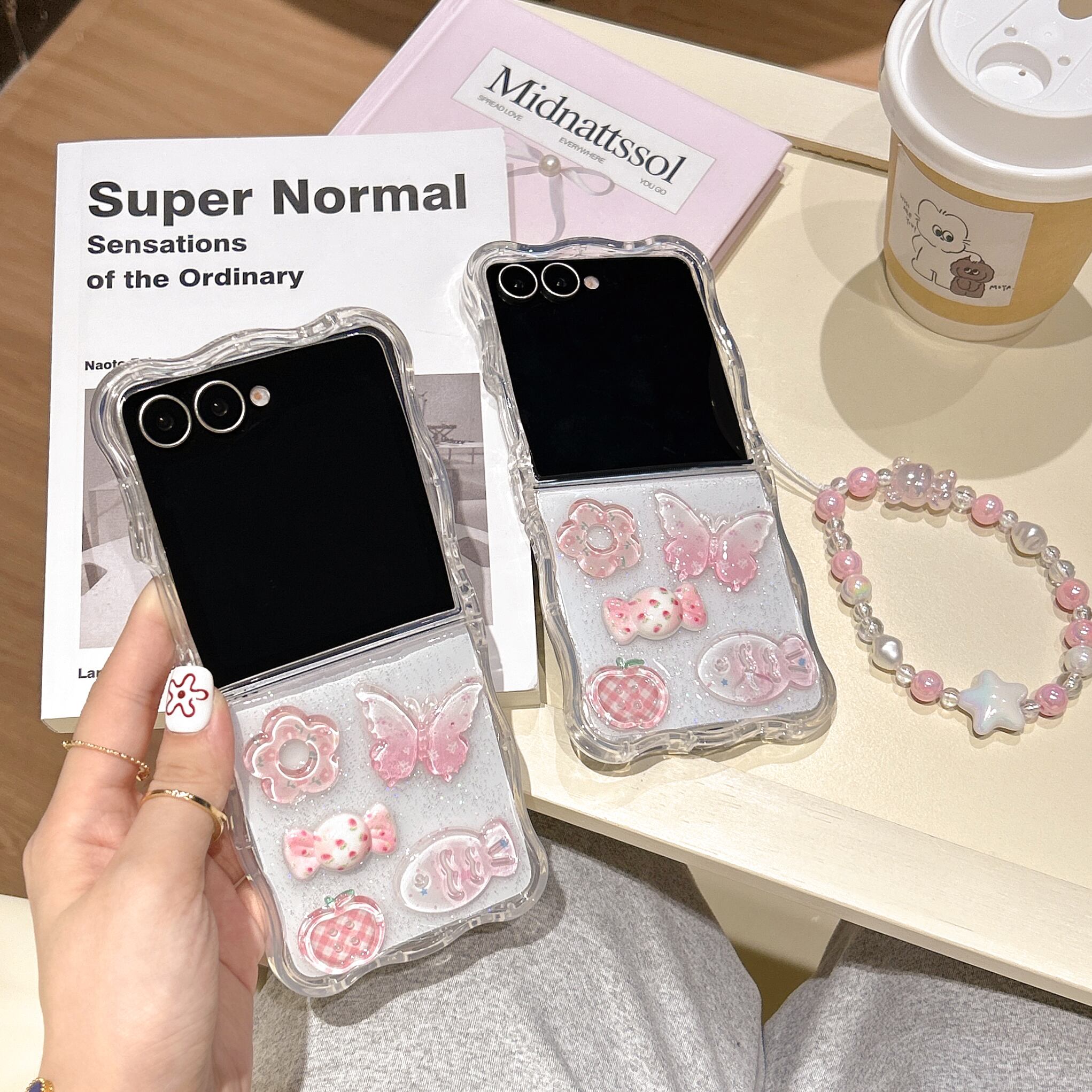 Galaxy Z Flip7 ケース / 韓国雑貨 / ウェーブフレーム / 透明感 / イラスト / ゆるかわ / 大人可愛い / 推し活グッズ / スマホストラップ対応
