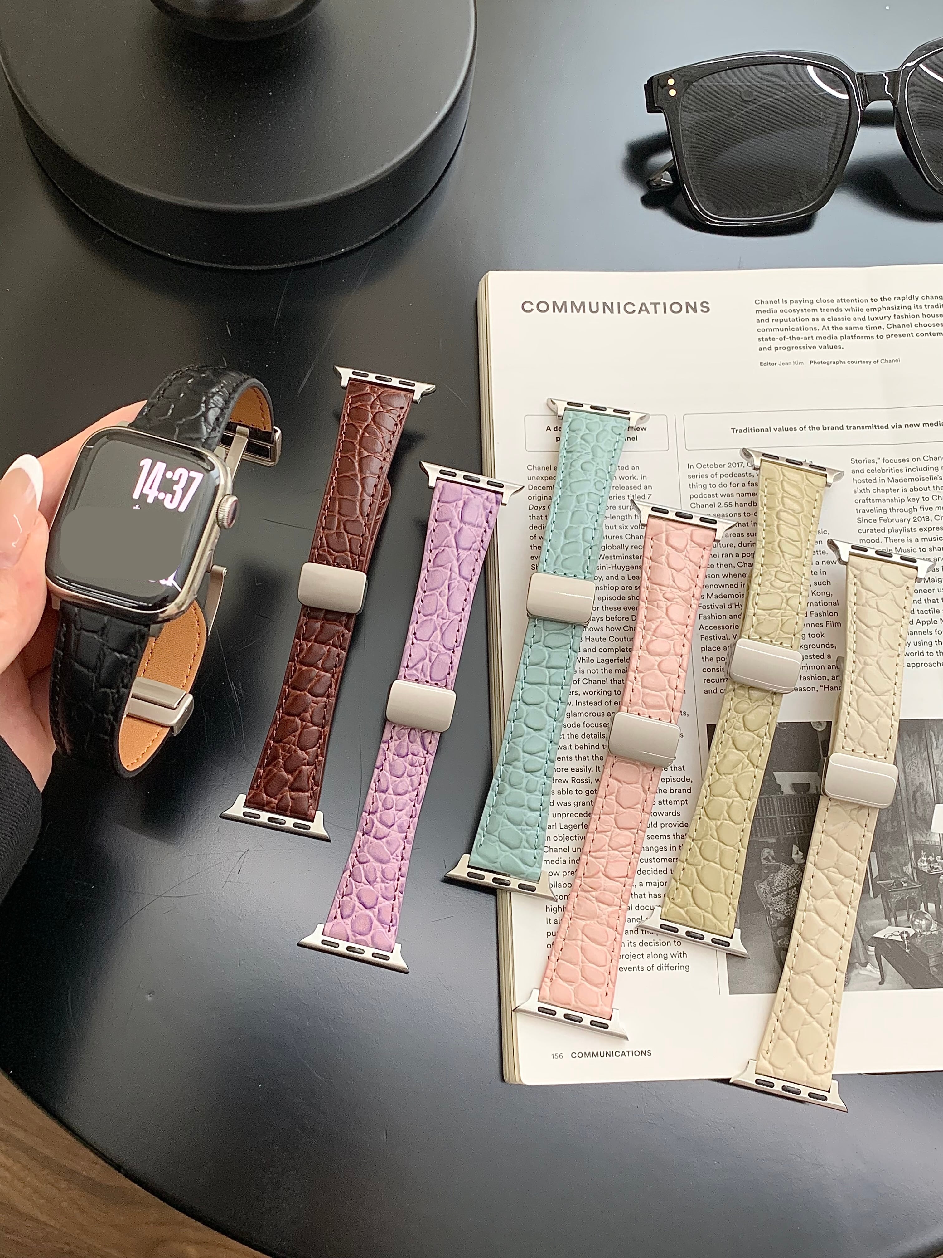 型押し 本革 Apple Watch バンド マグネバックル ワニ柄 アップルウォッチバンド Series 11 10 9 8 SE3 Ultra3 対応 おしゃれ 交換ベルト 革ベルト