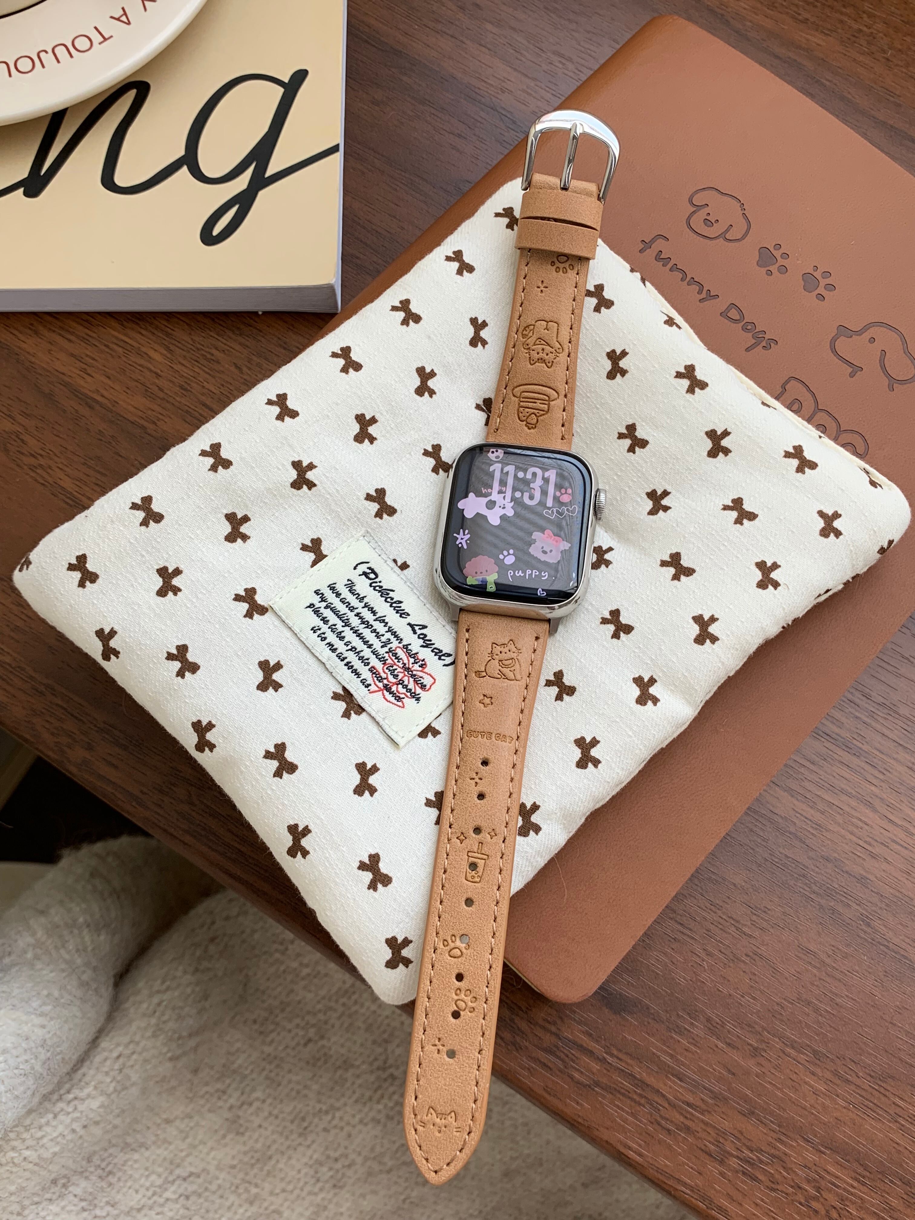 動物型押し Apple Watch バンド 本革 アップルウォッチバンド Series 11 10 9 SE3 Ultra3 対応 交換ベルト 可愛い
