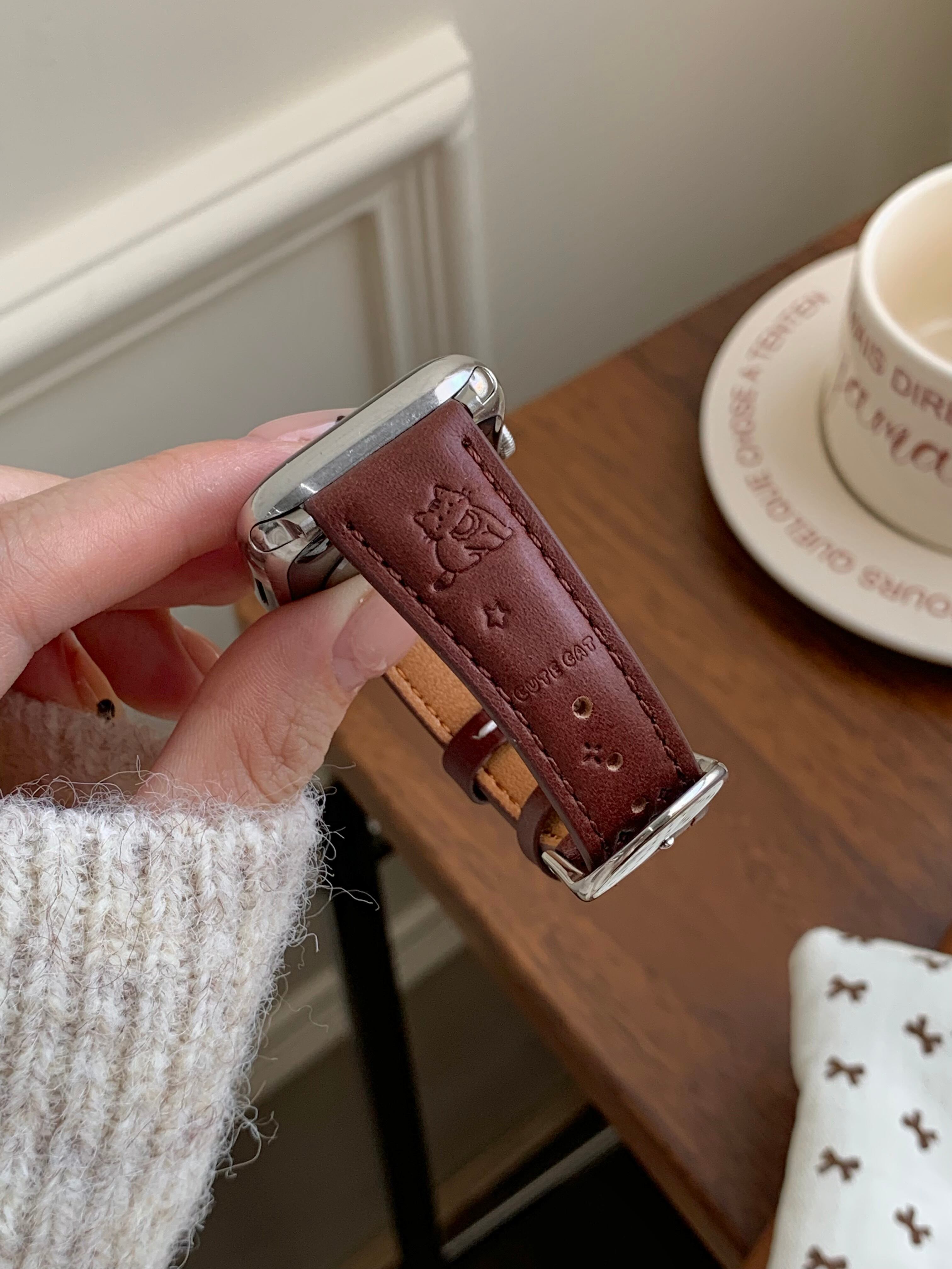 にゃんこ×いちごケーキモチーフを型押しした本革Apple Watchバンドが登場!
