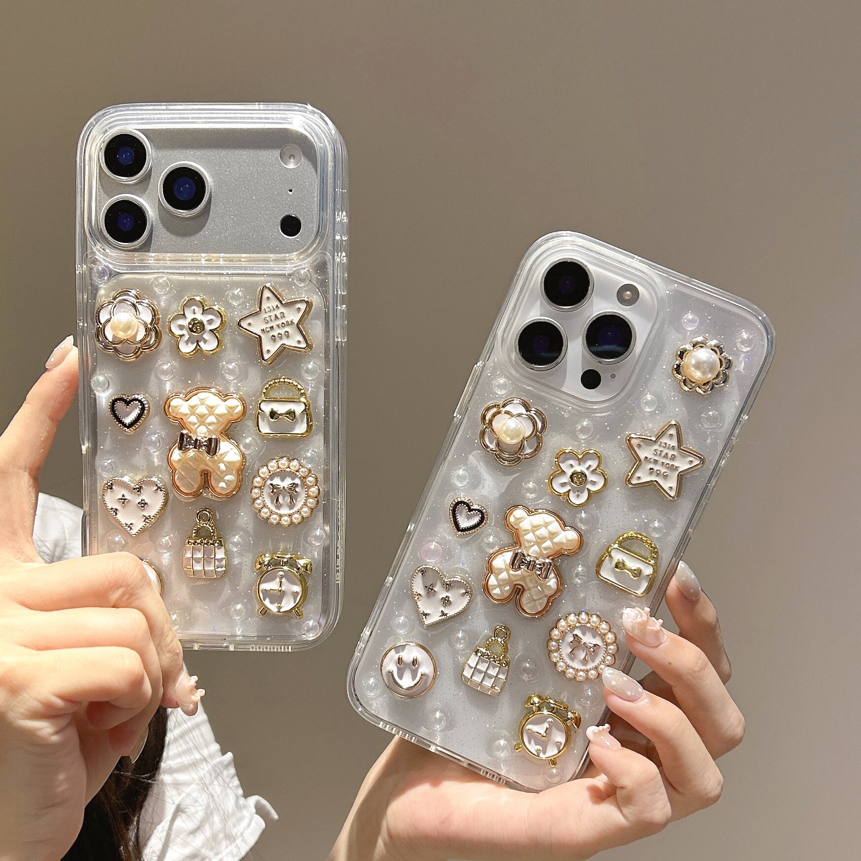 豪奢なくまさん iphone 17 16 15 14 13 12 ケース クリア くま パール リボン ビジュー かわいい おしゃれ 女子 大人可愛い キラキラ TPU 耐衝撃 プレゼント ギフト