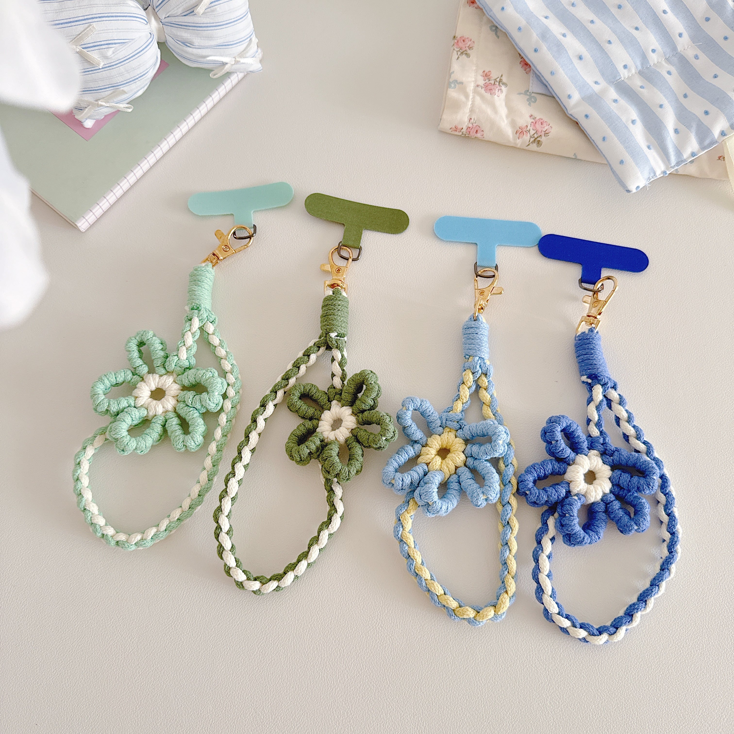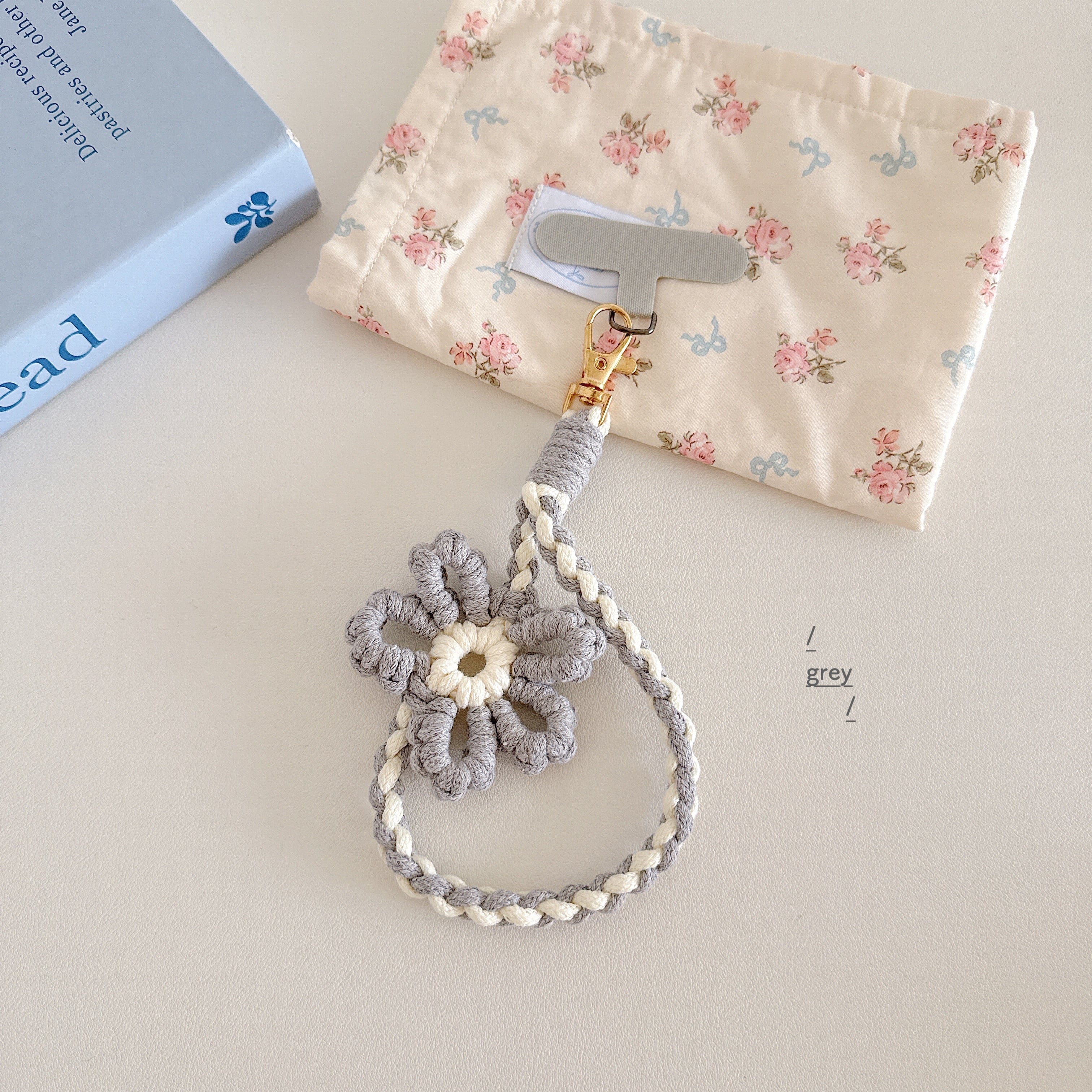 紐編みフラワーハンドストラップ(ストラップホルダー付き)