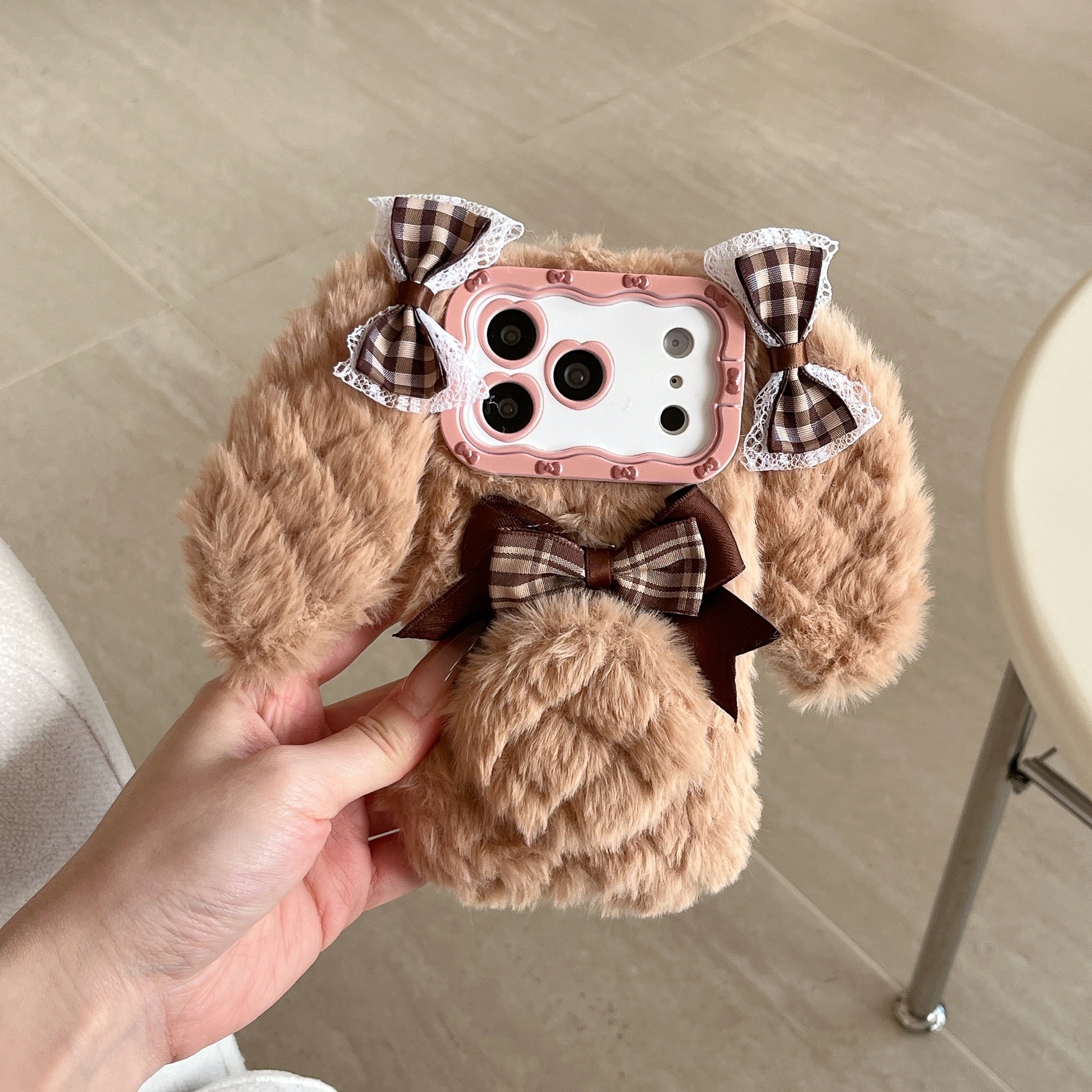 もこもこ ウサギ iPhone 17 16 15 14 13 ケース かわいい うさぎ耳 ぬいぐるみ ふわふわ スマホケース スタンド機能