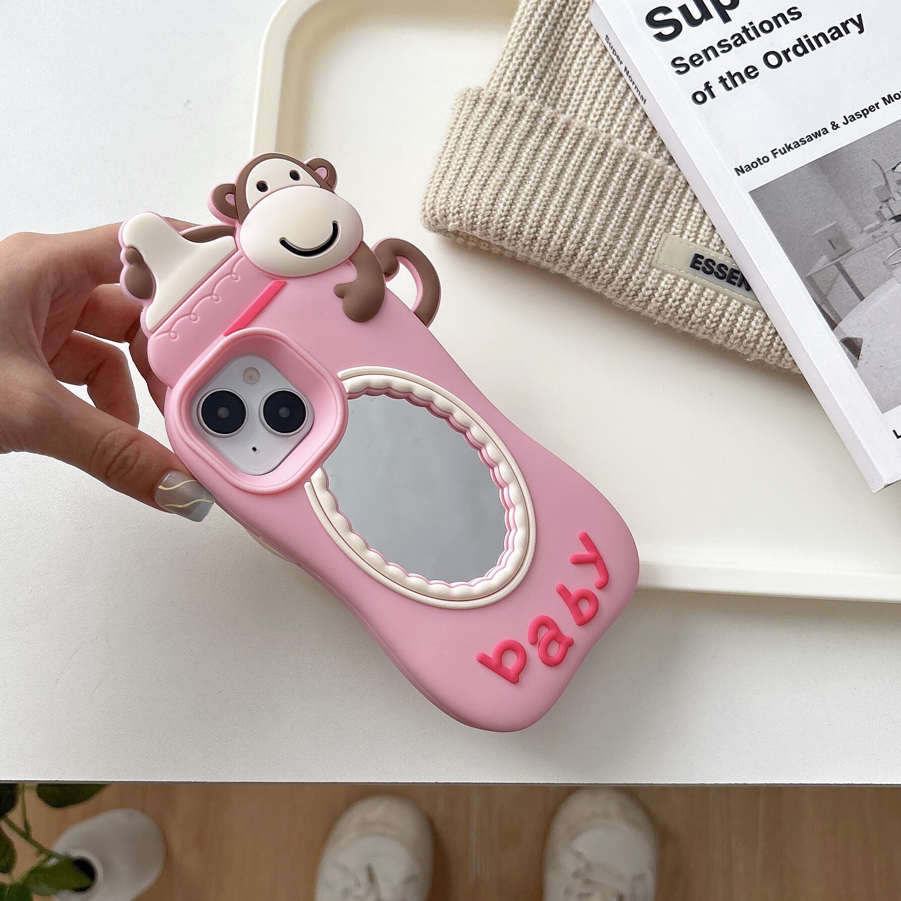 ベイビーモンキー iPhone 17 16 15 14 13 ケース ミラー付き 可愛い シリコン サル 猿 スマホカバー 耐衝撃