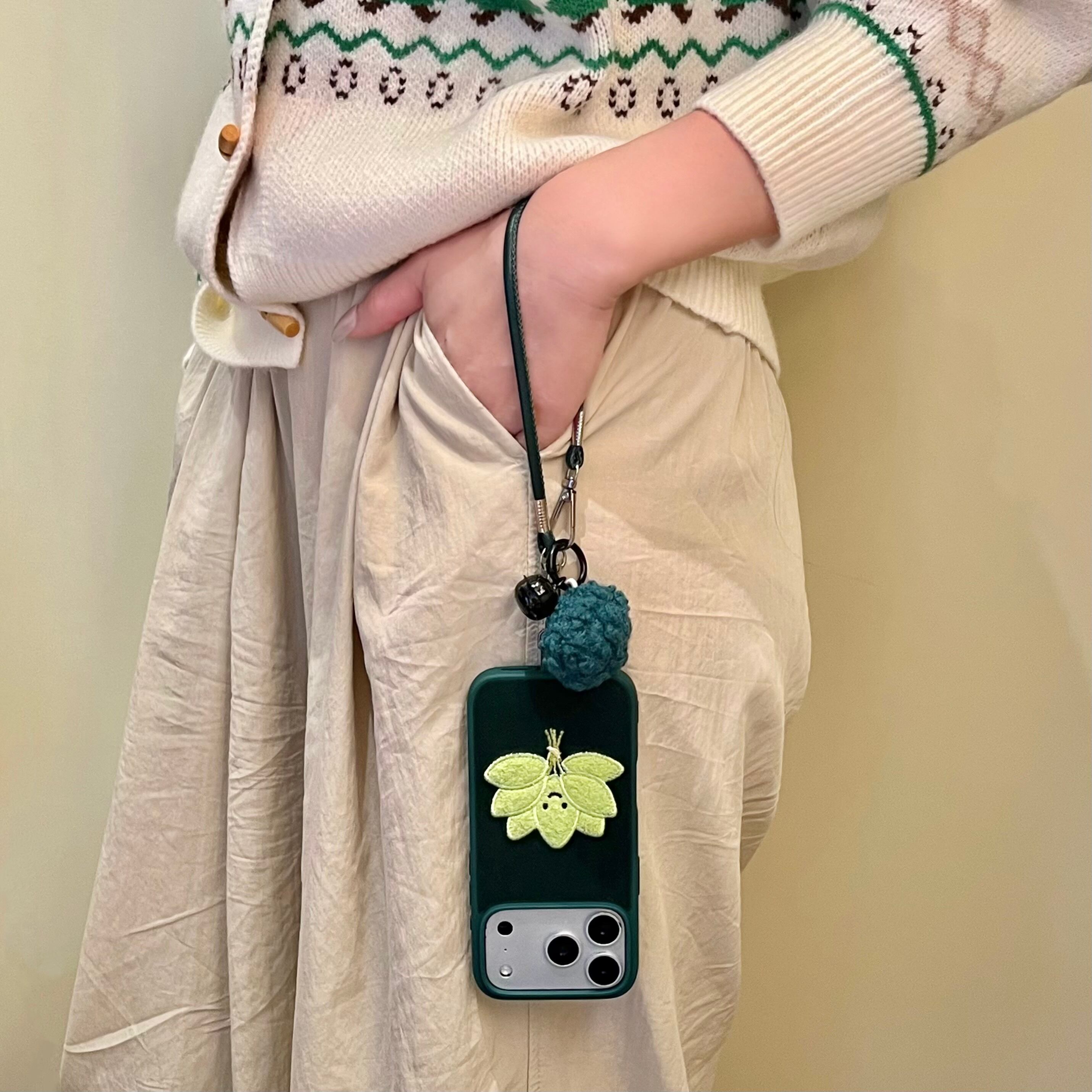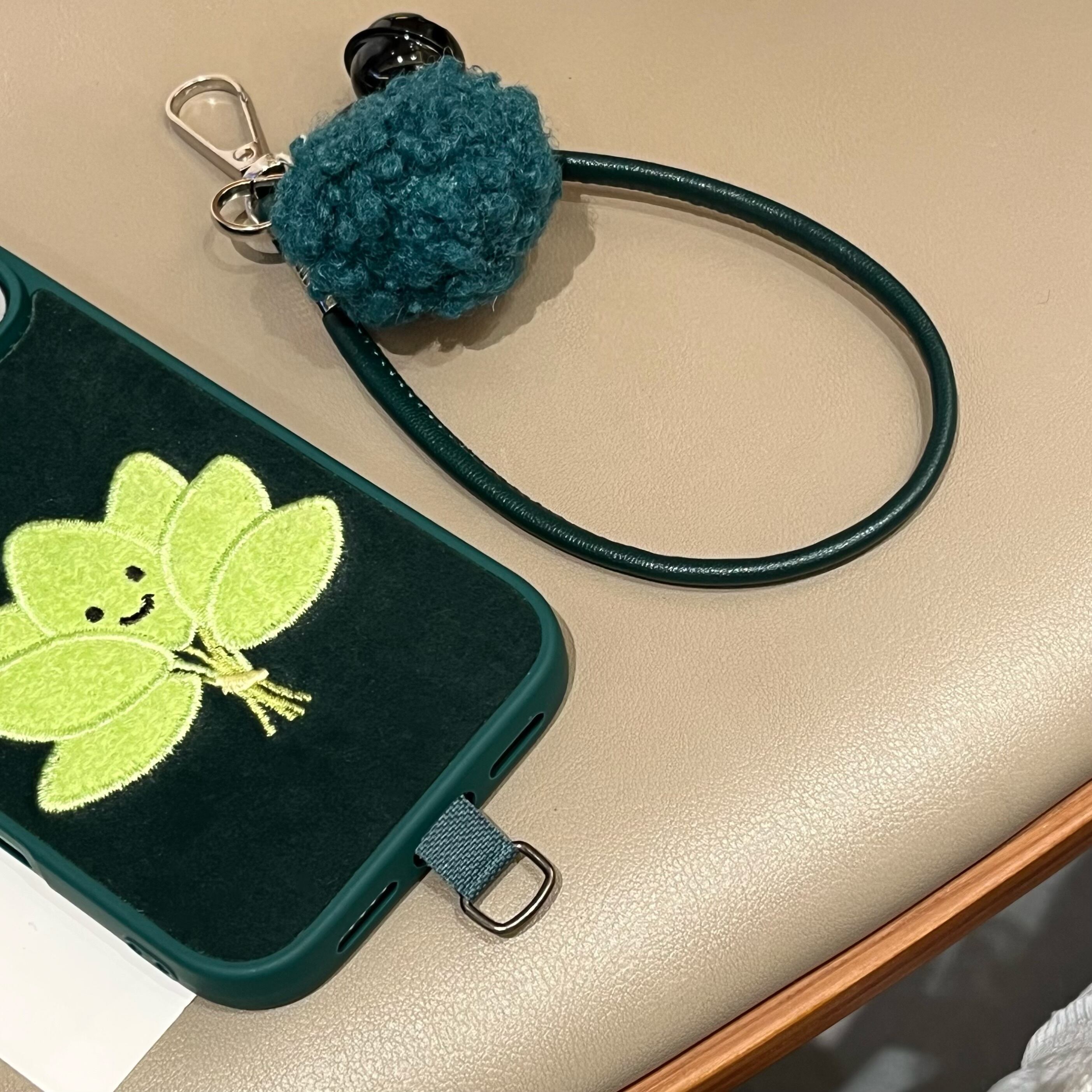 木の葉 刺繍 iphone 17 16 15 14 ケース 可愛い ハンドストラップ スマホケース