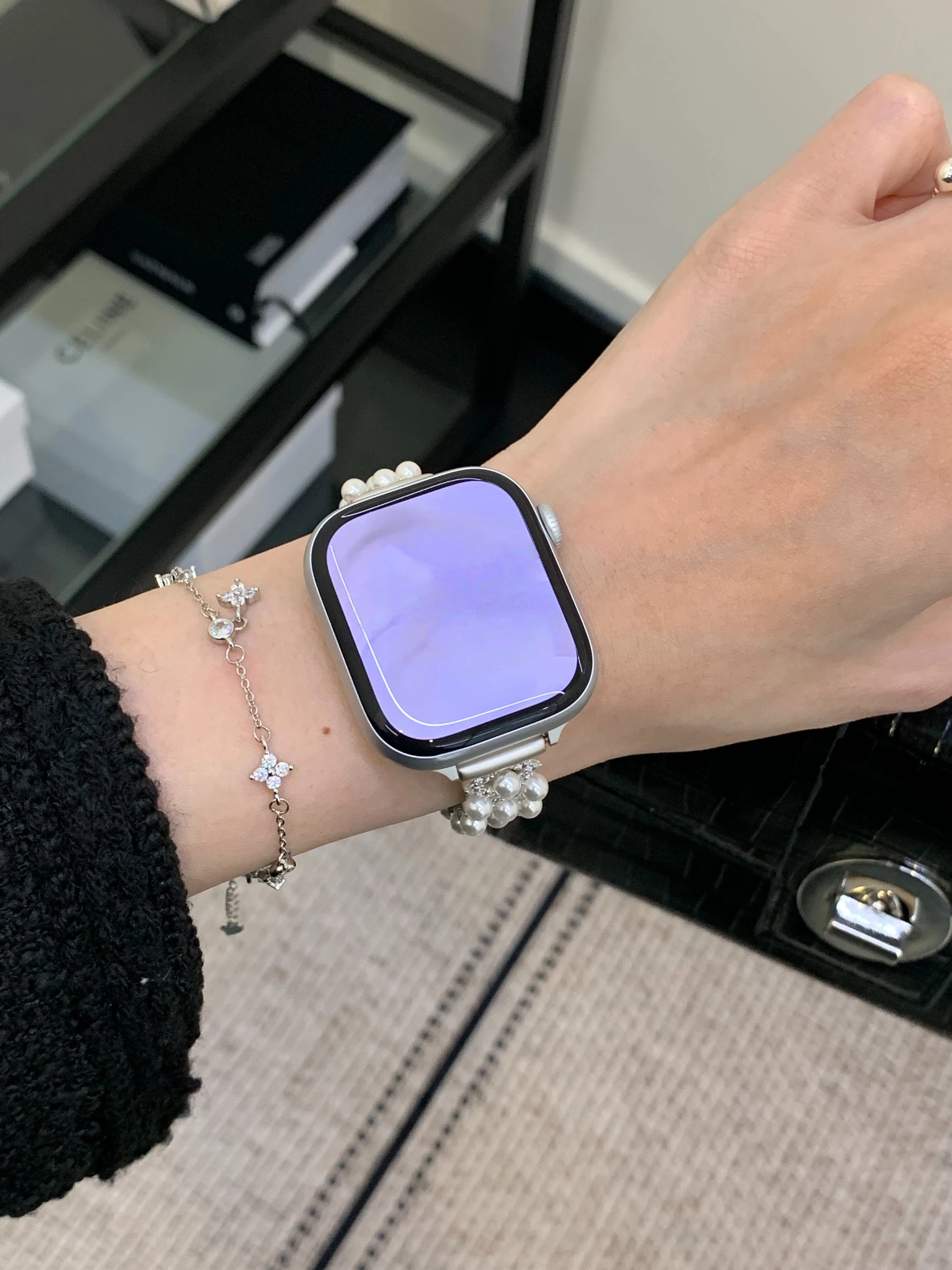 上品な光沢のパールを贅沢に使用した、ラグジュアリーな Apple Watch バンド。