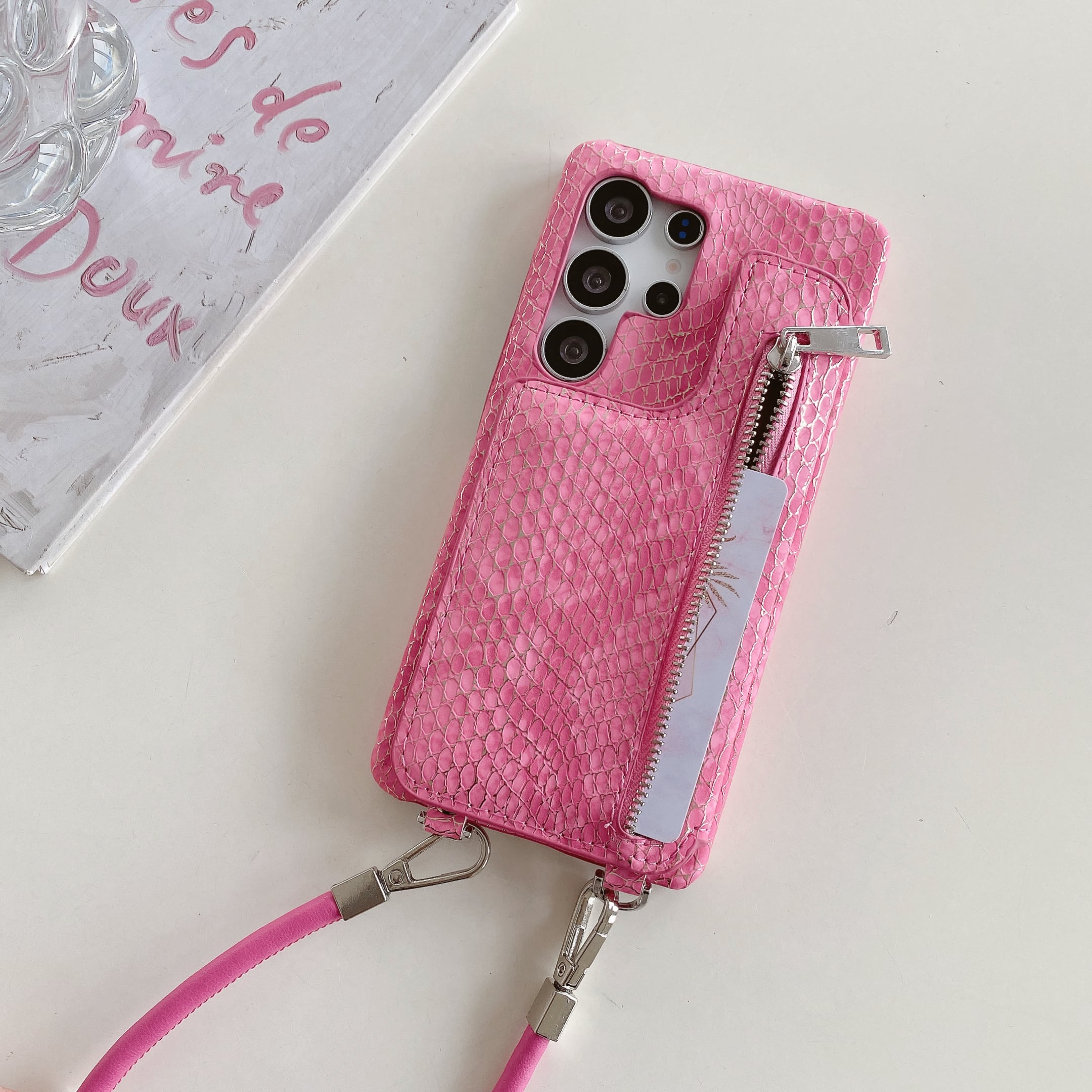 ヘビ柄PUレザー製ストラップ付きスマホケースが登場。