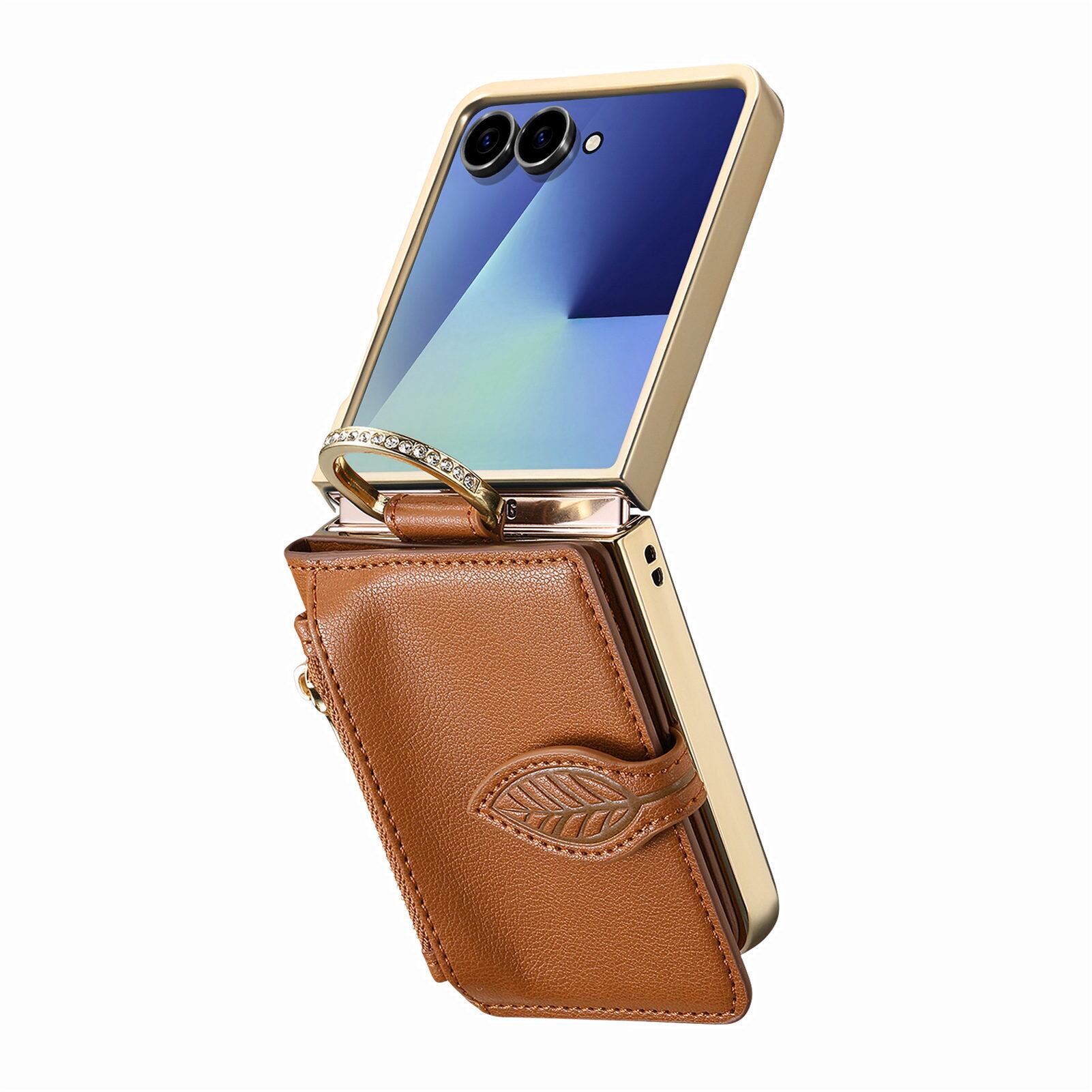 木の葉 Galaxy Z Flip 7 6 5 4 ケース おしゃれ ミラー付き カード収納 スマホケース キラキラ スマホリング