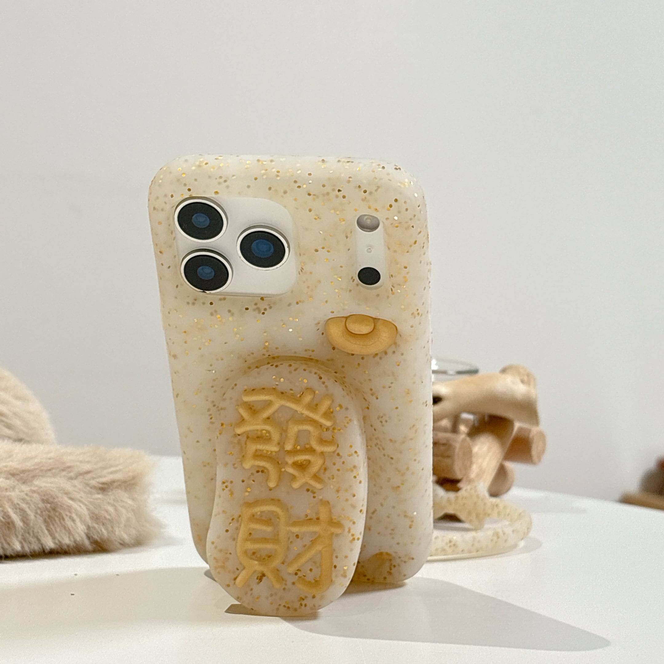 金運UP! iPhone 17 16 15 14 13 ケース ラメ入り 可愛い シリコン 發財 ストラップ付き スマホカバー