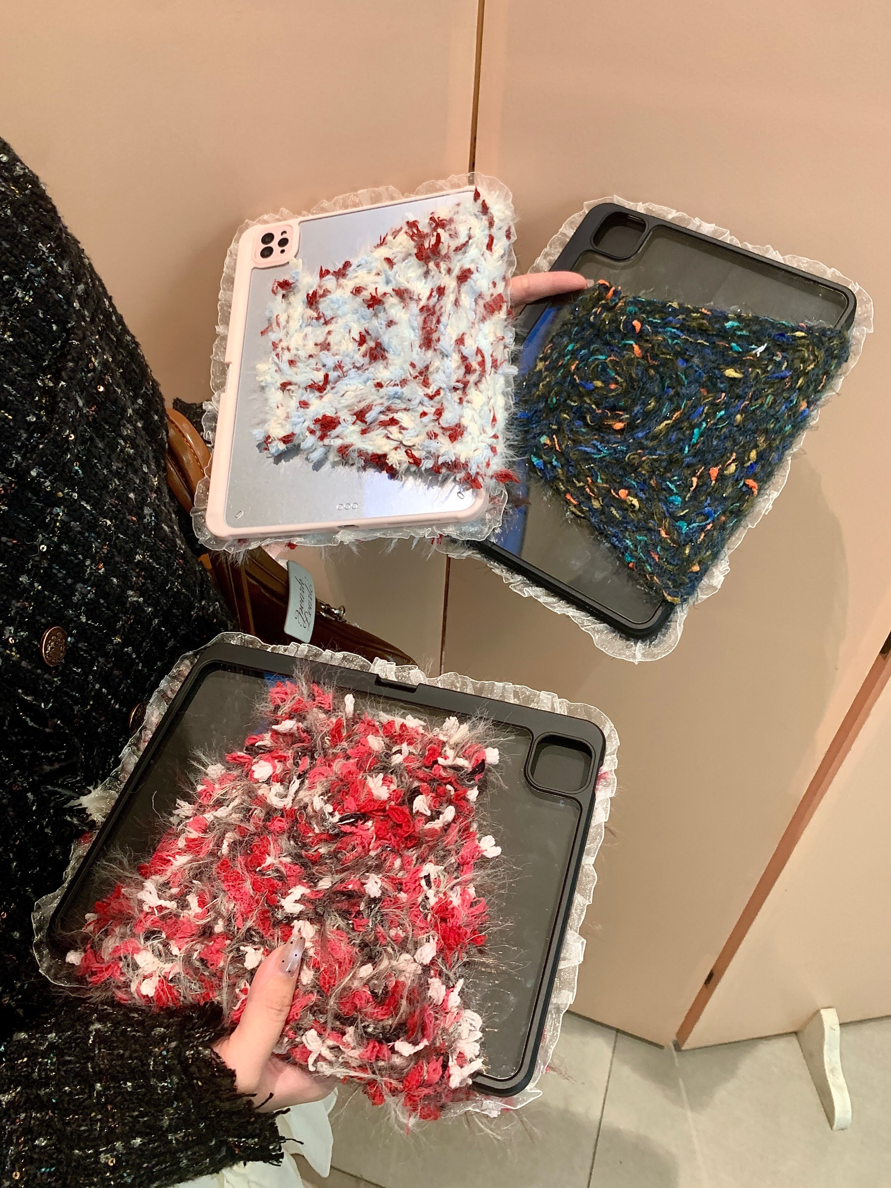 ハンドメイド iPadケース もこもこ ipad air11 air13 ipad a16 第10/9/8/7世代 ケース ipad mini7 ipad pro11 pro13 カバー かわいい ペン収納 スタンド機能 ふわふわ