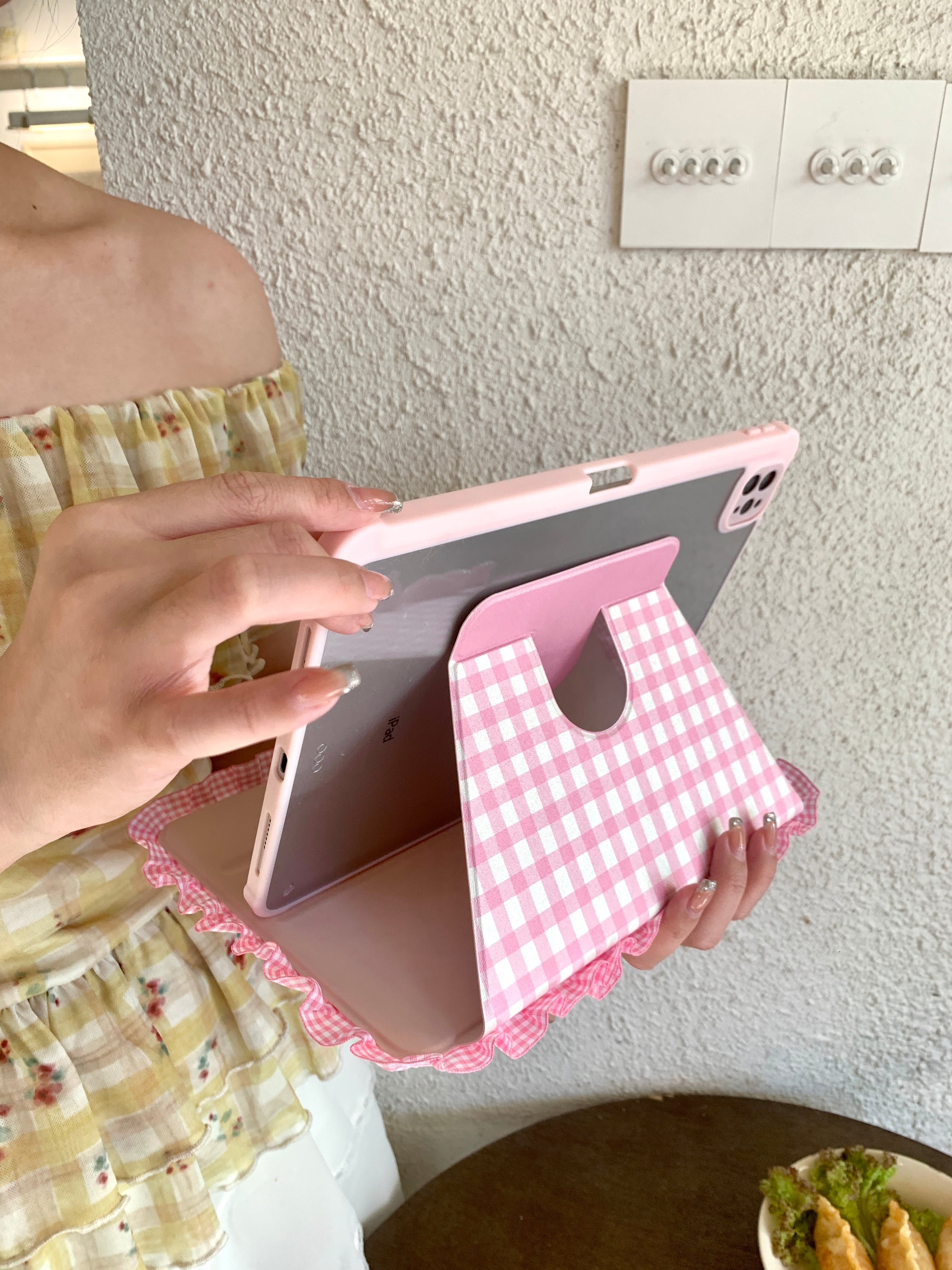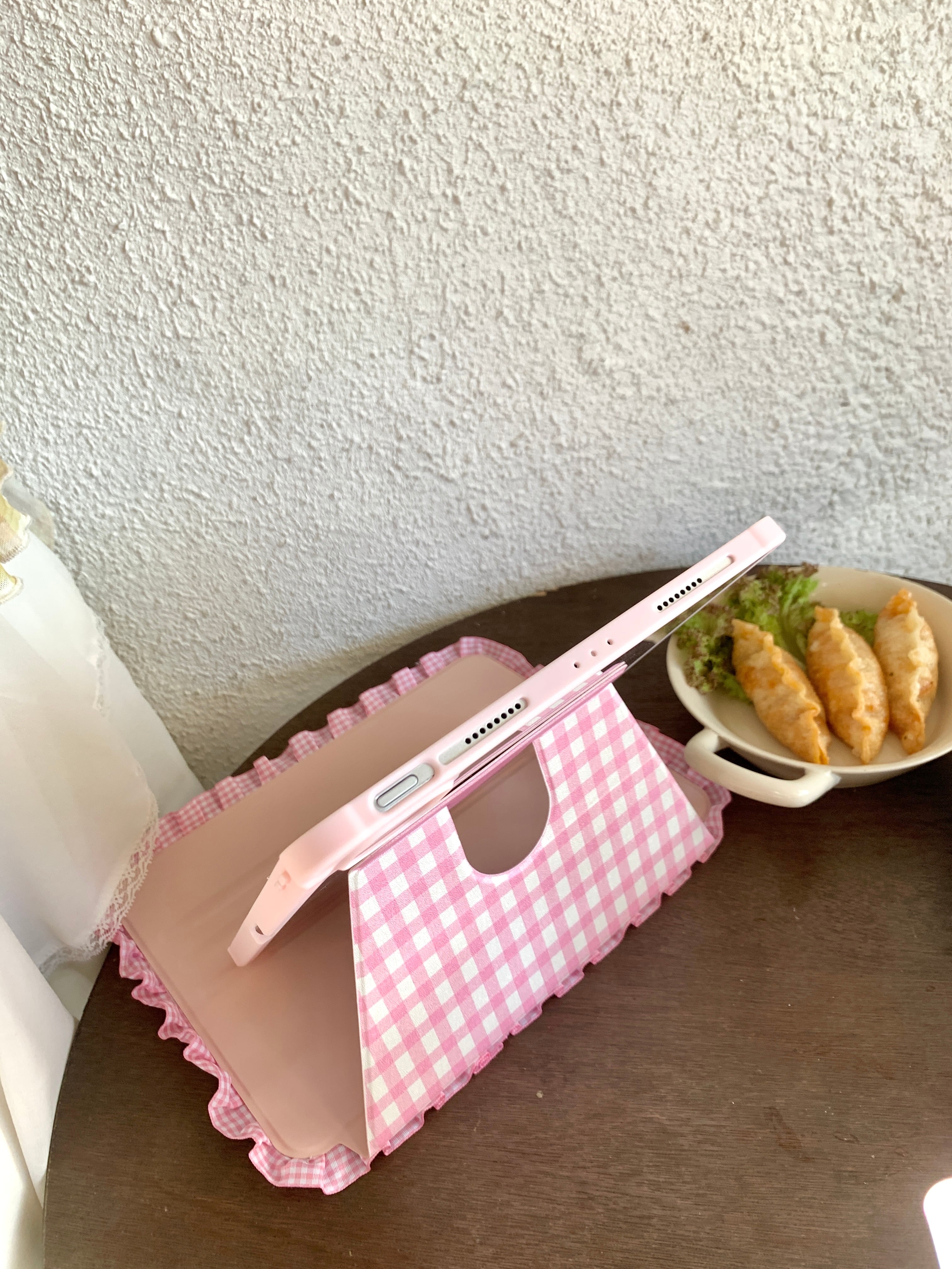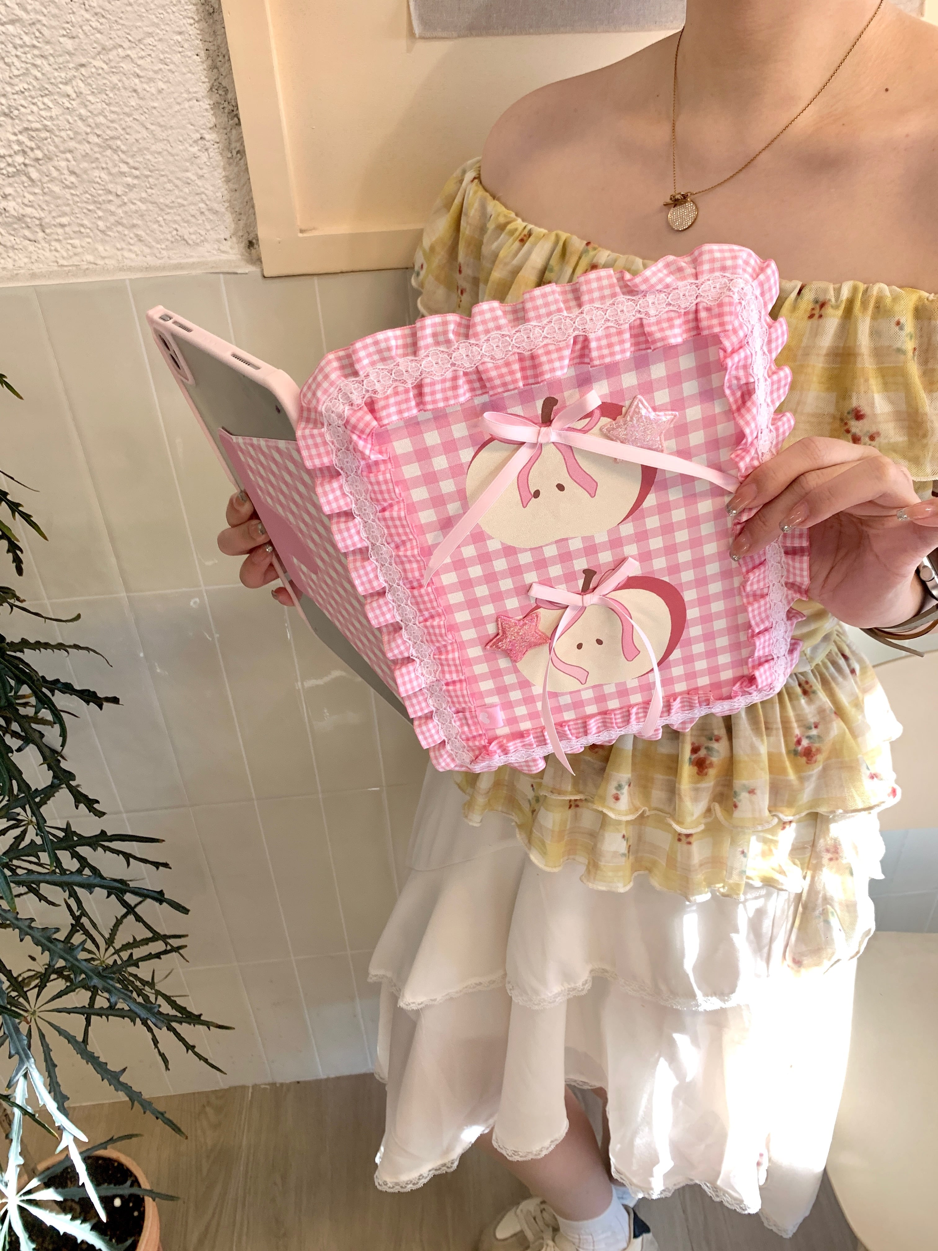 ハンドメイド iPadケース かわいい フリル ipad air11 air13 ipad a16 第10/9/8/7世代 ケース ipad mini7 ipad pro11 pro13 カバー ペン収納 スタンド機能 チェック柄 りんご