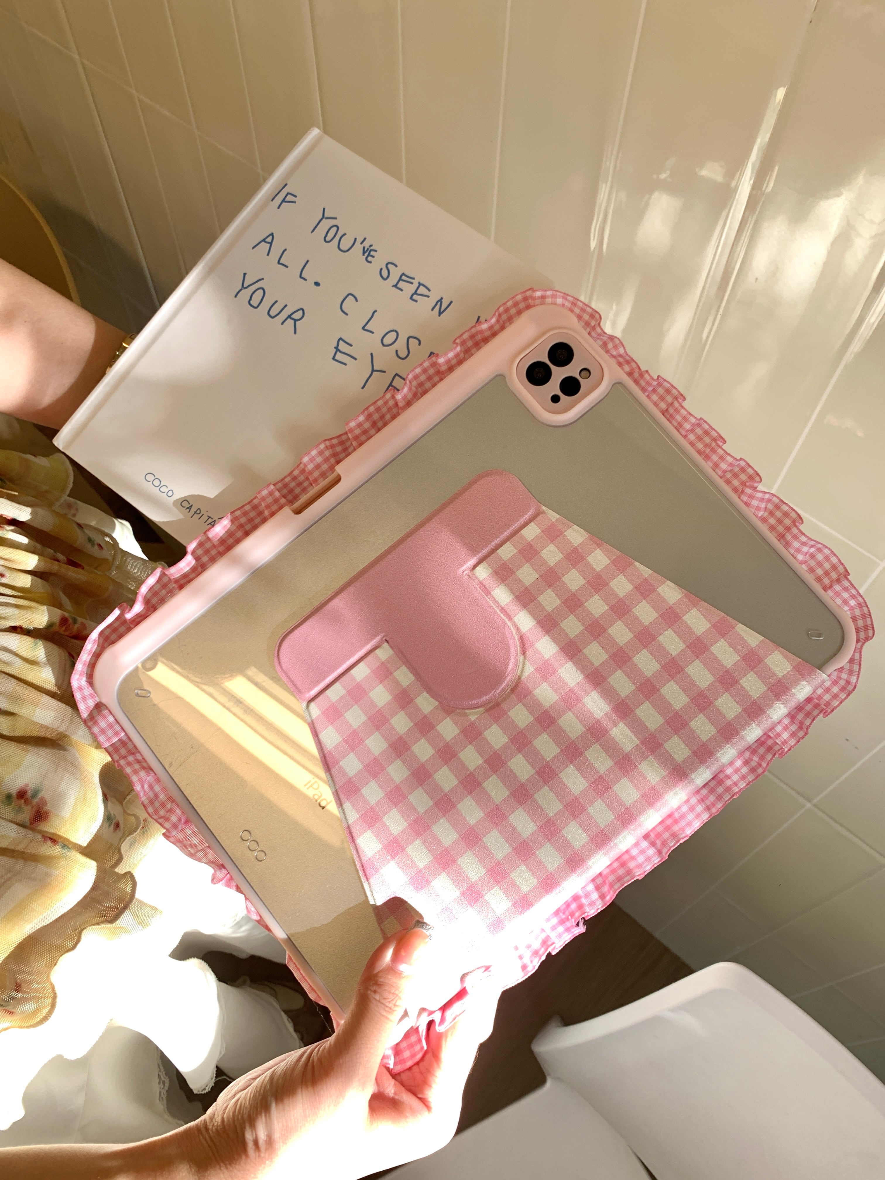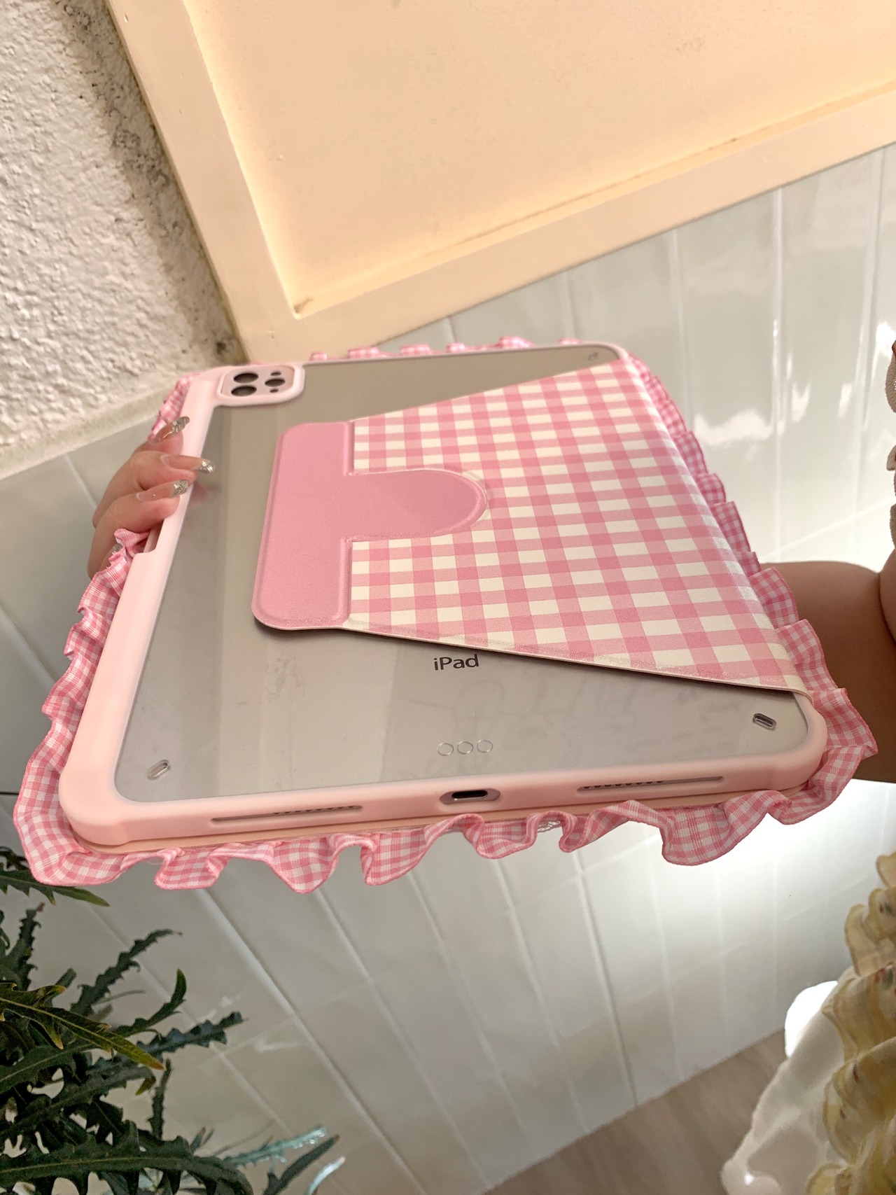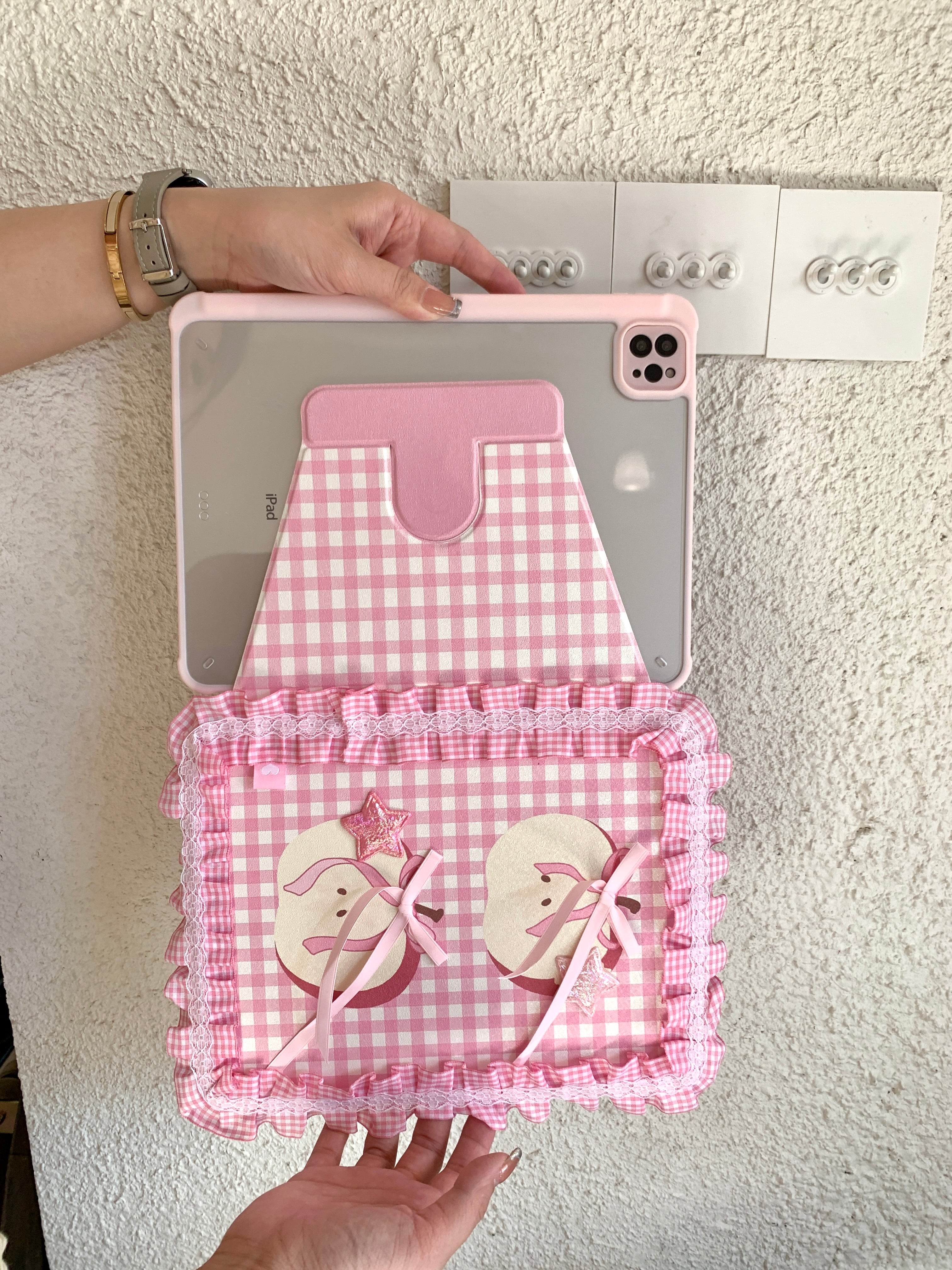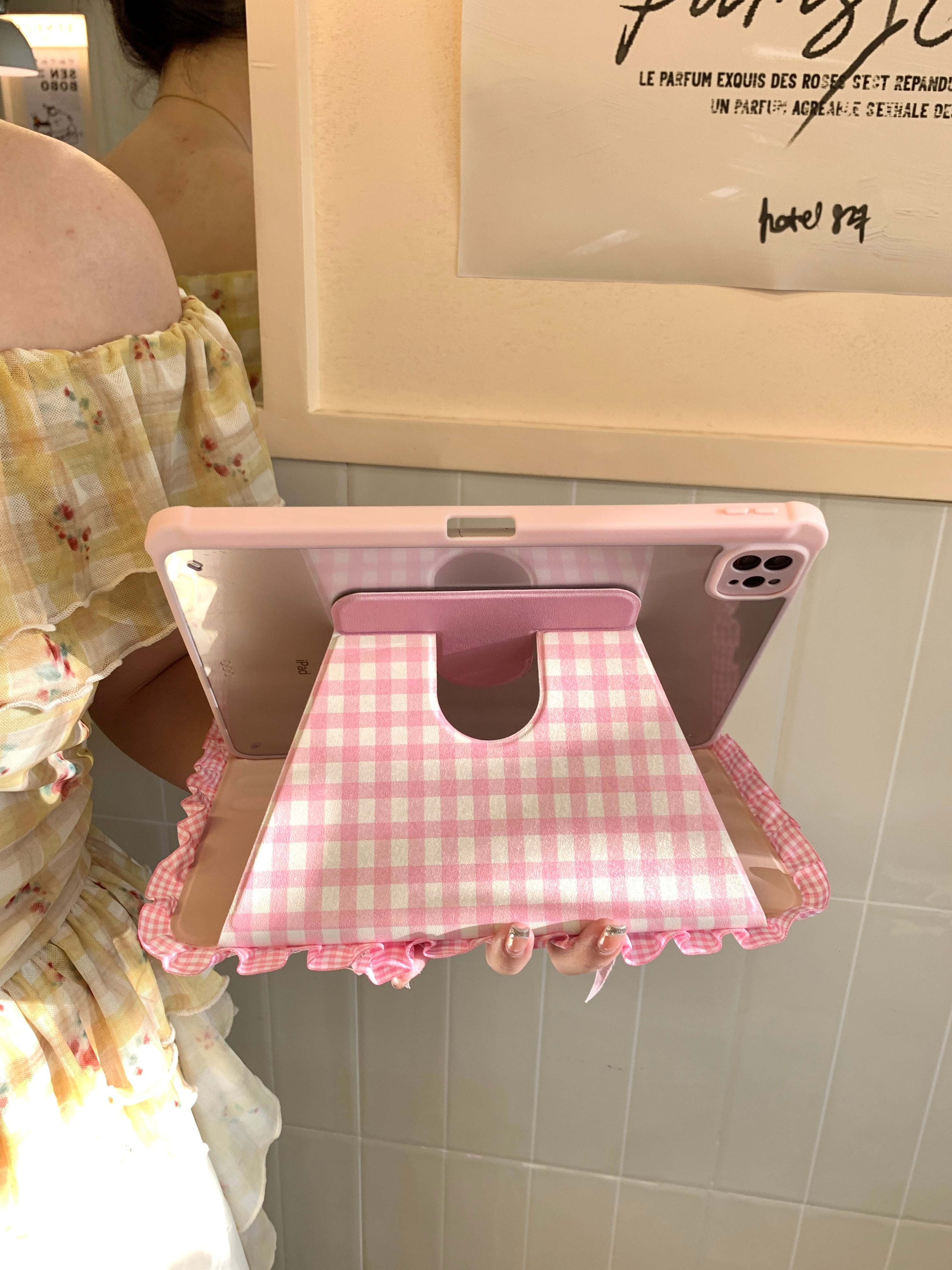 ハンドメイド iPadケース かわいい フリル ipad air11 air13 ipad a16 第10/9/8/7世代 ケース ipad mini7 ipad pro11 pro13 カバー ペン収納 スタンド機能 チェック柄 りんご