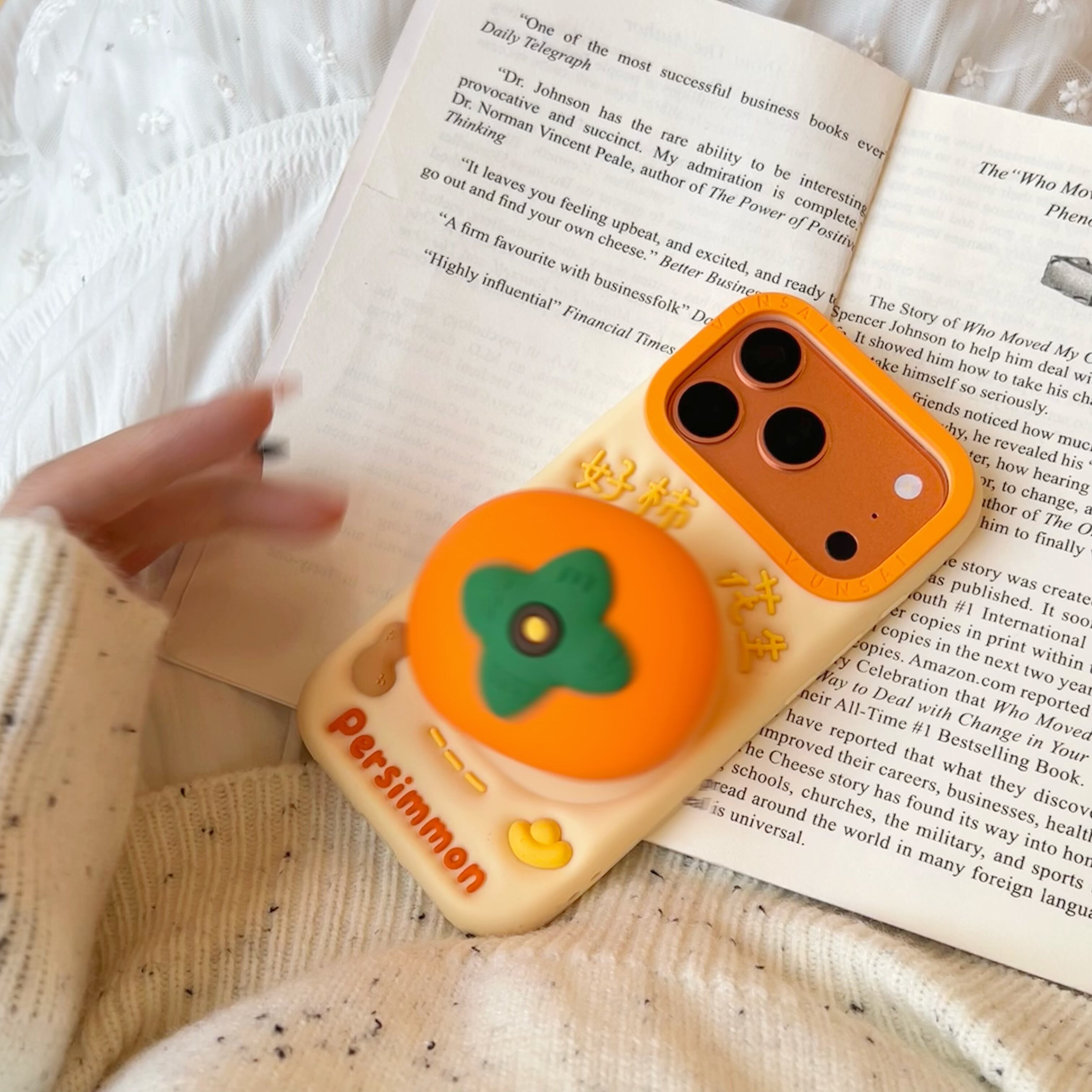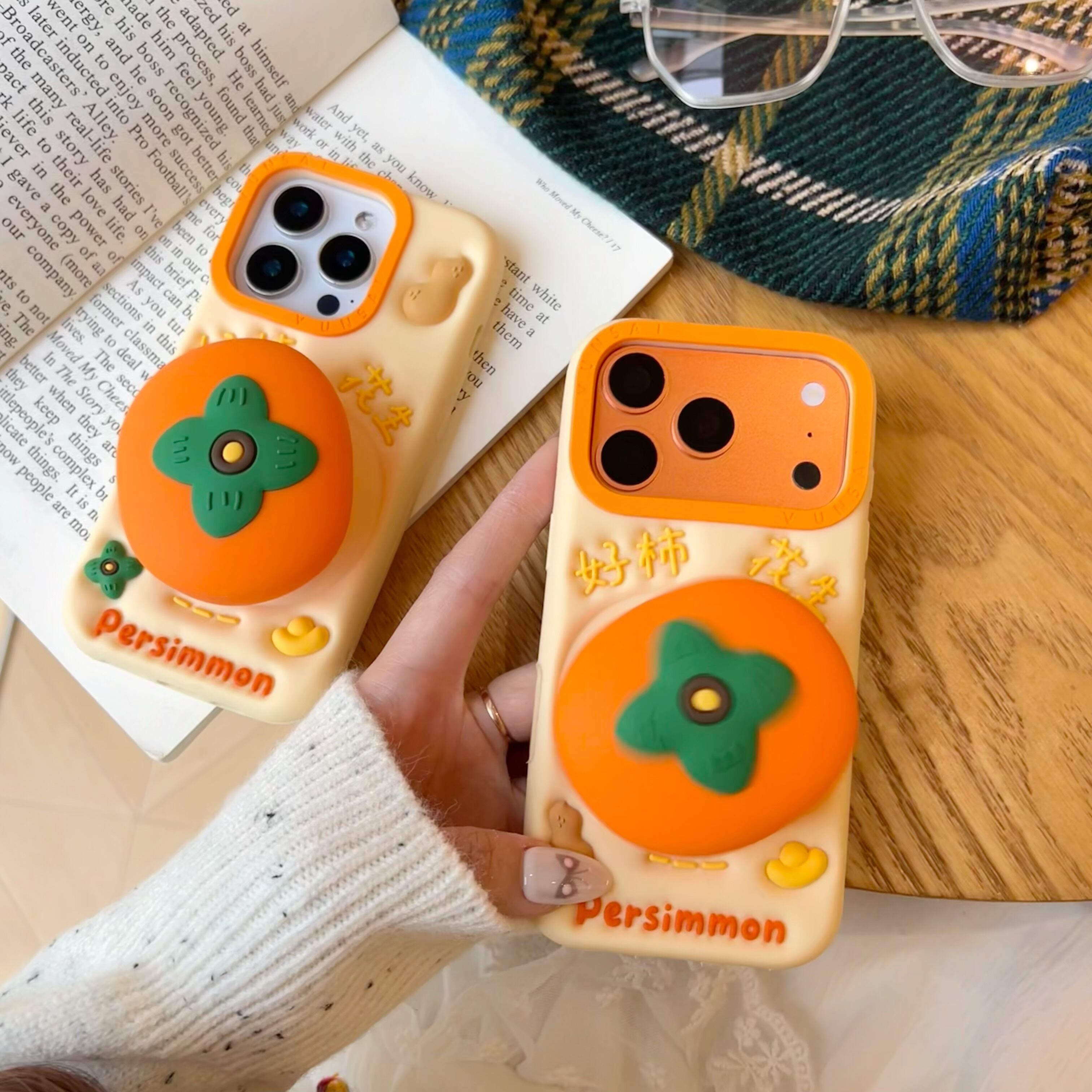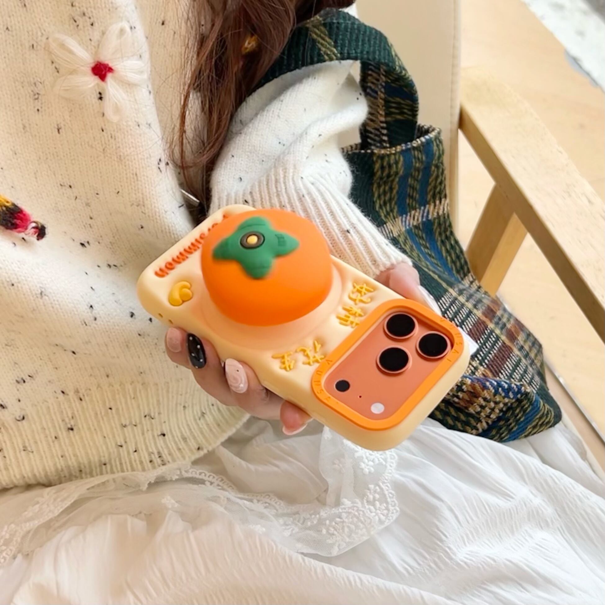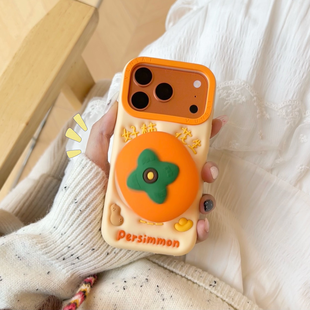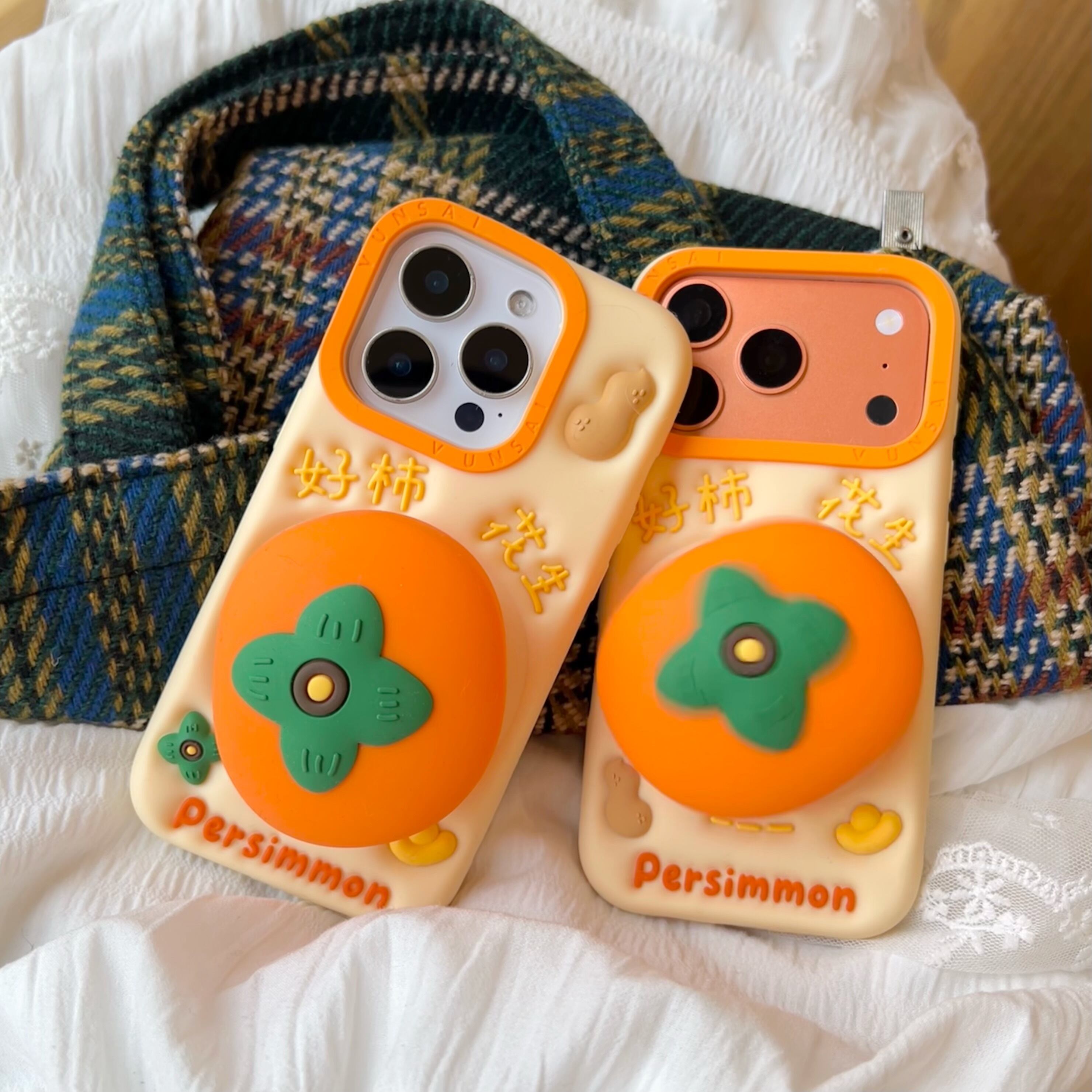 開運 iPhone 17 16 15 14 13 12 11 ケース 可愛い 柿 シリコン スタンド機能 スマホカバー 耐衝撃