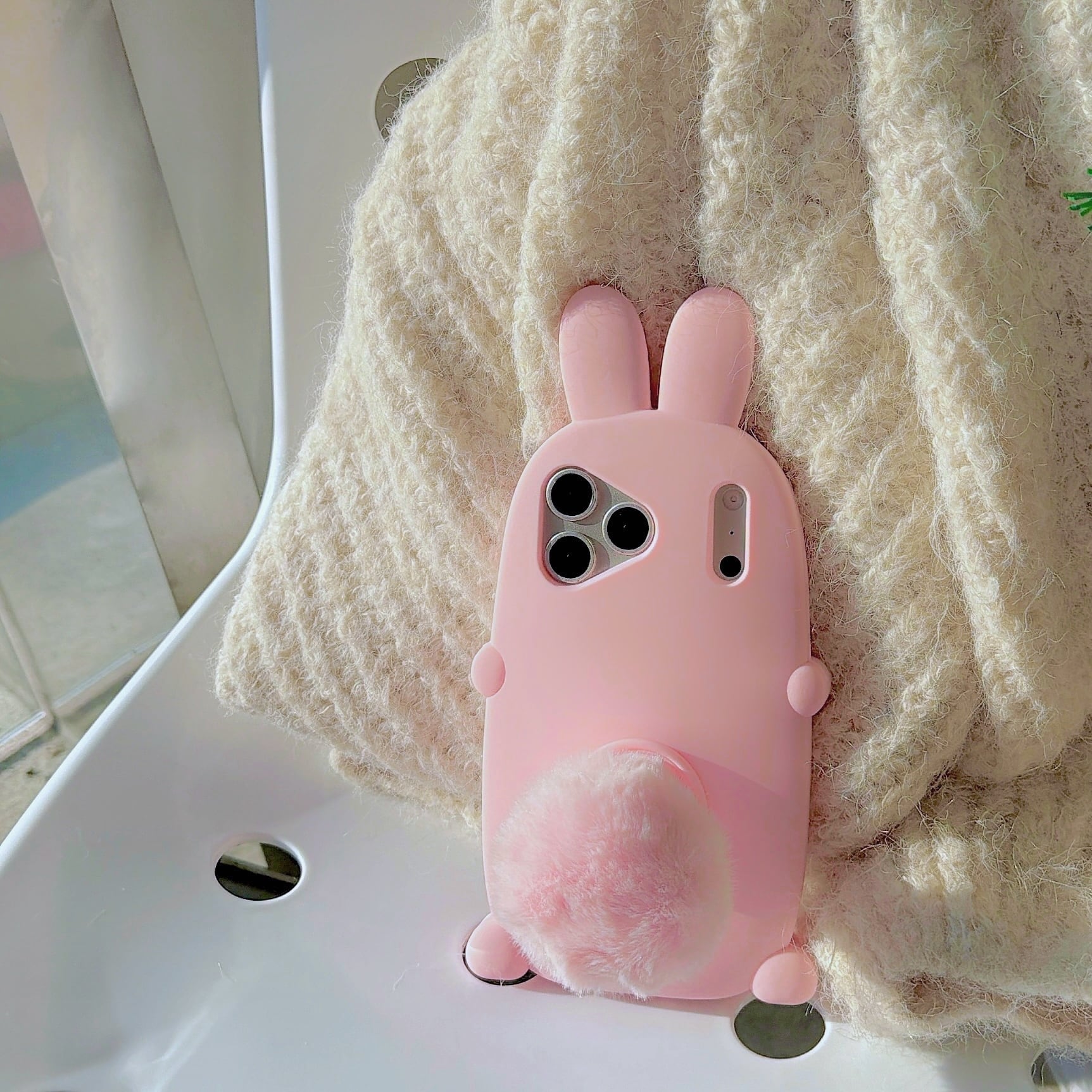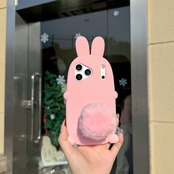 うさみみ iPhone 16 15 14 13 ケース シリコン製 可愛い うさぎ しっぽ スマホケース 韓国風 もこもこ